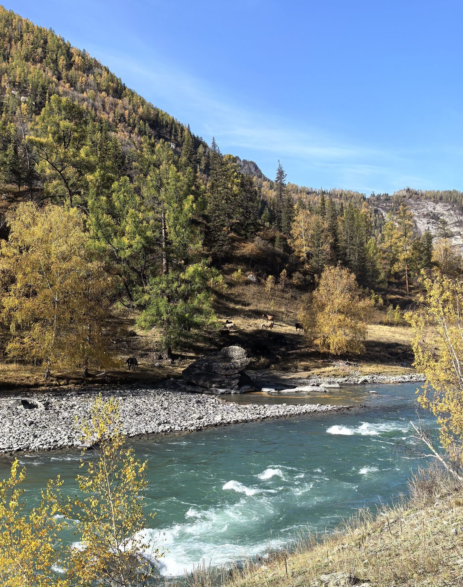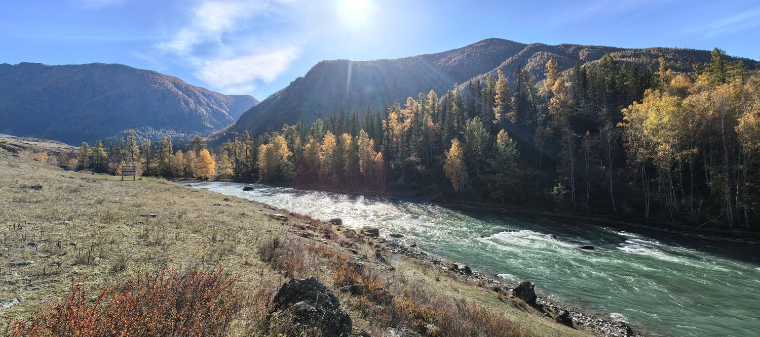 Старт с Семинского перевала в сторону Шебалино, пара лёгких перевалов, интересные спуски с несложными бродами реки Каспа, осенняя бирюзовая Катунь, Чемальская долина; все эти локации играют совершенно другими красками, чем летом. Осень это идеальная пора для велопоходов!