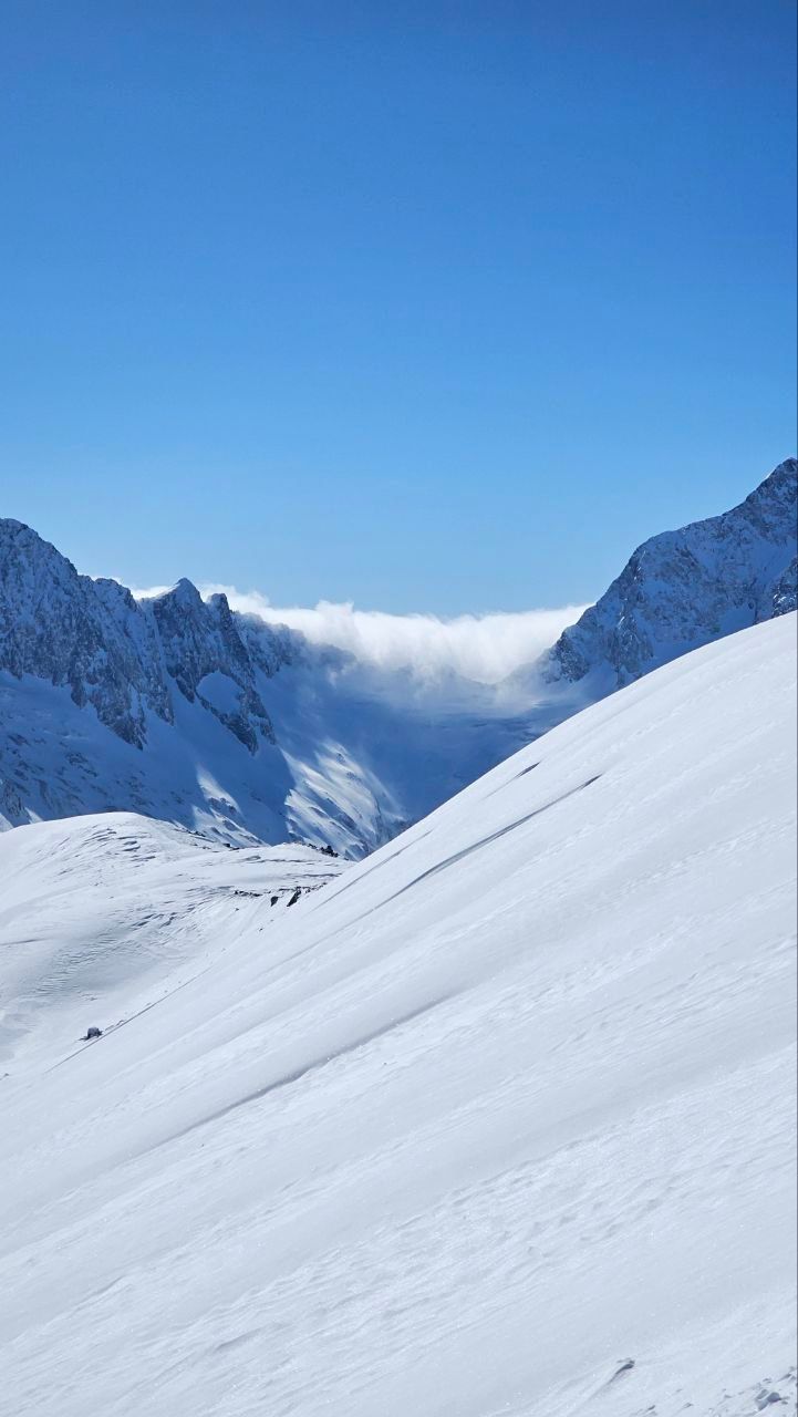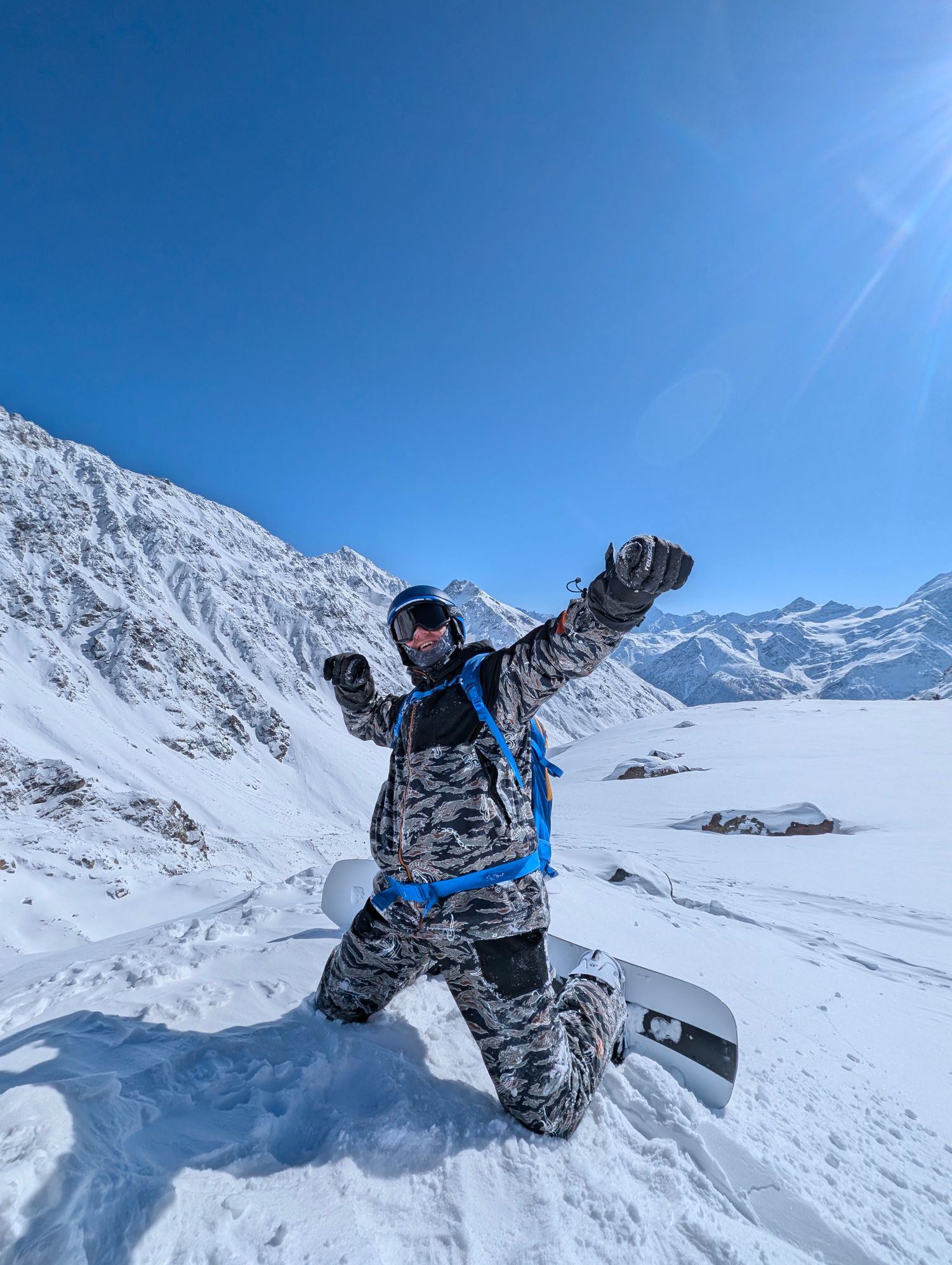 08:00 Адово завтракаем! Ведь нам сегодня предстоит катать на высшей точке Европы. Выходим на улицу, и то, что мы видим, не описать словами Лучшие фотообои мира, куда ни поверни голову! Но его величество Эльбрус пока скрыт от нас за перевалом. Едем в Азау 5 минут, прыгаем в подъемник, и через 5-7 минут подъема начинает показываться высшая точка Европы Эльбрус. Катаем! Один солнечный день выберем для заброски на ратраках (по желанию, не входит в стоимость тура)