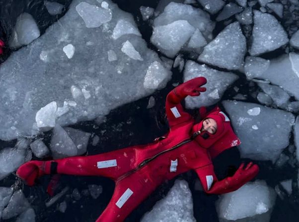 купаемся в специальных костюмах среди льдин