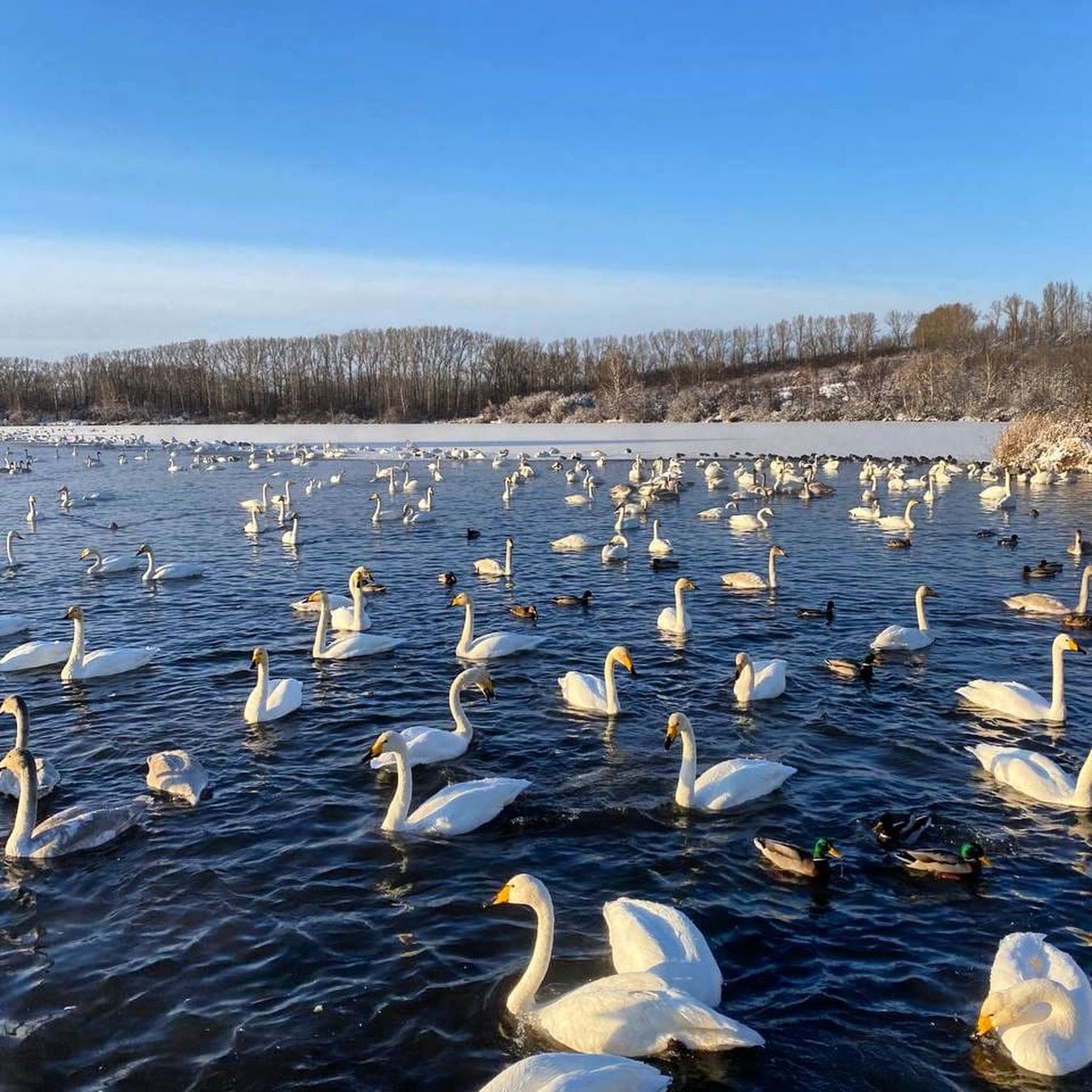 - Лебединное озеро в Алтайском крае называют зимней сказкой.Озеро Лебединое (Светлое) — красивая достопримечательность региона. Расположено 80 км от курорта Белокуриха, на территории озера находится государственный природный заказник Лебединый. Он создан с целью сохранения единственной на Алтае зимовки лебедей кликунов. Причина кроется в секрете озера, которое из-за многочисленных родников не замерзает, температура воды зимой не опускается ниже +5 градусов и лебеди остаются на зимовку. А Вы знали, что в России всего два заказника, где зимуют лебеди? А мы с гордостью отмечаем, что один находится у нас, на Алтае, а второй в Анадырском районе Чукотского автономного округа.