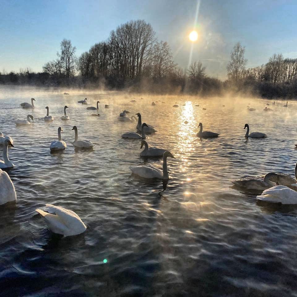 История знакомства с птицами которые прилетают зимовать на Алтай, здесь можно сделать красивые фотографии полюбоваться взлетами и посадками этих огромных и красивых птиц,а так-же послушать как они поют.