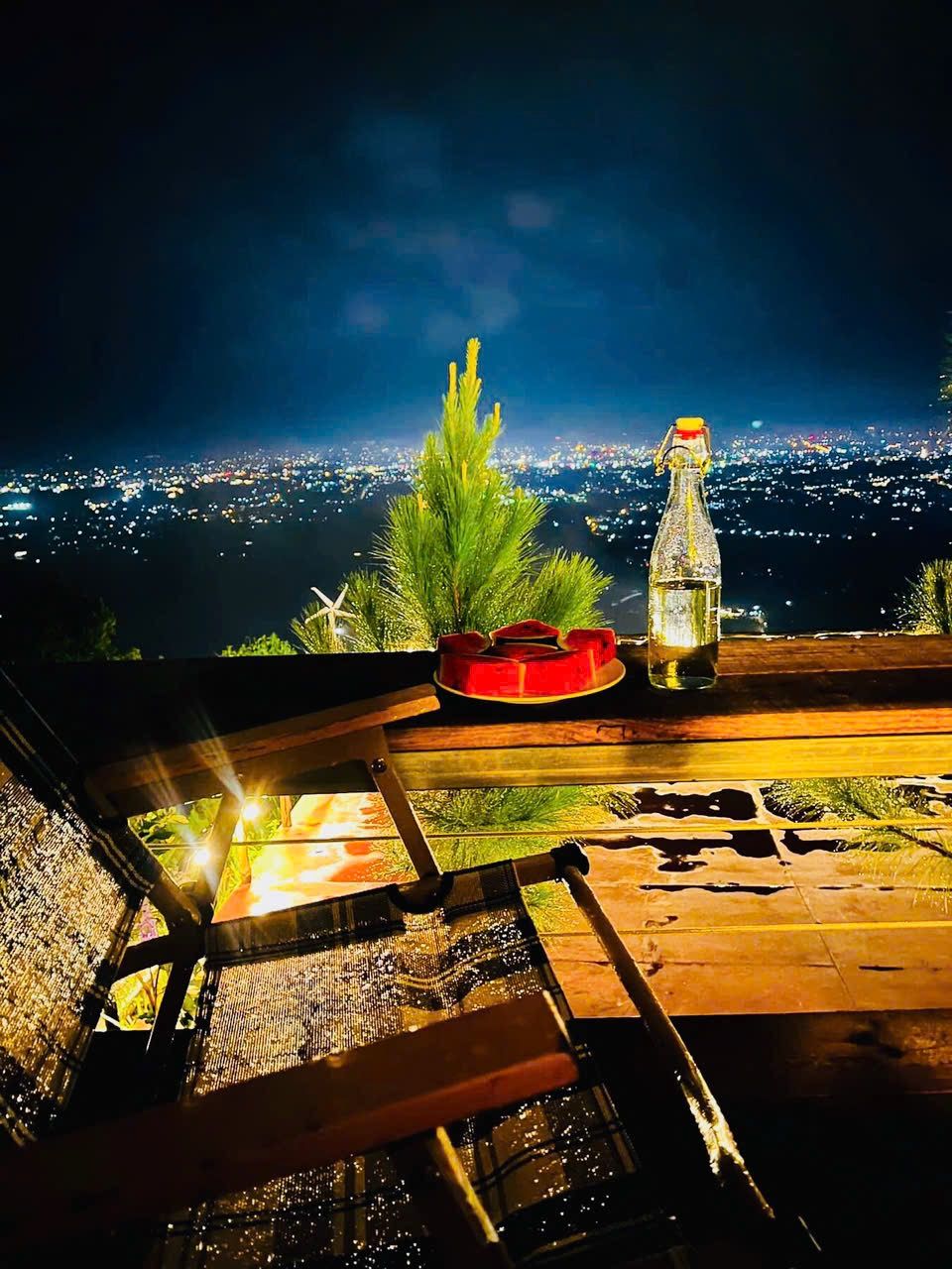 - Вечер у костра с барбекю, вином и видом на огни города