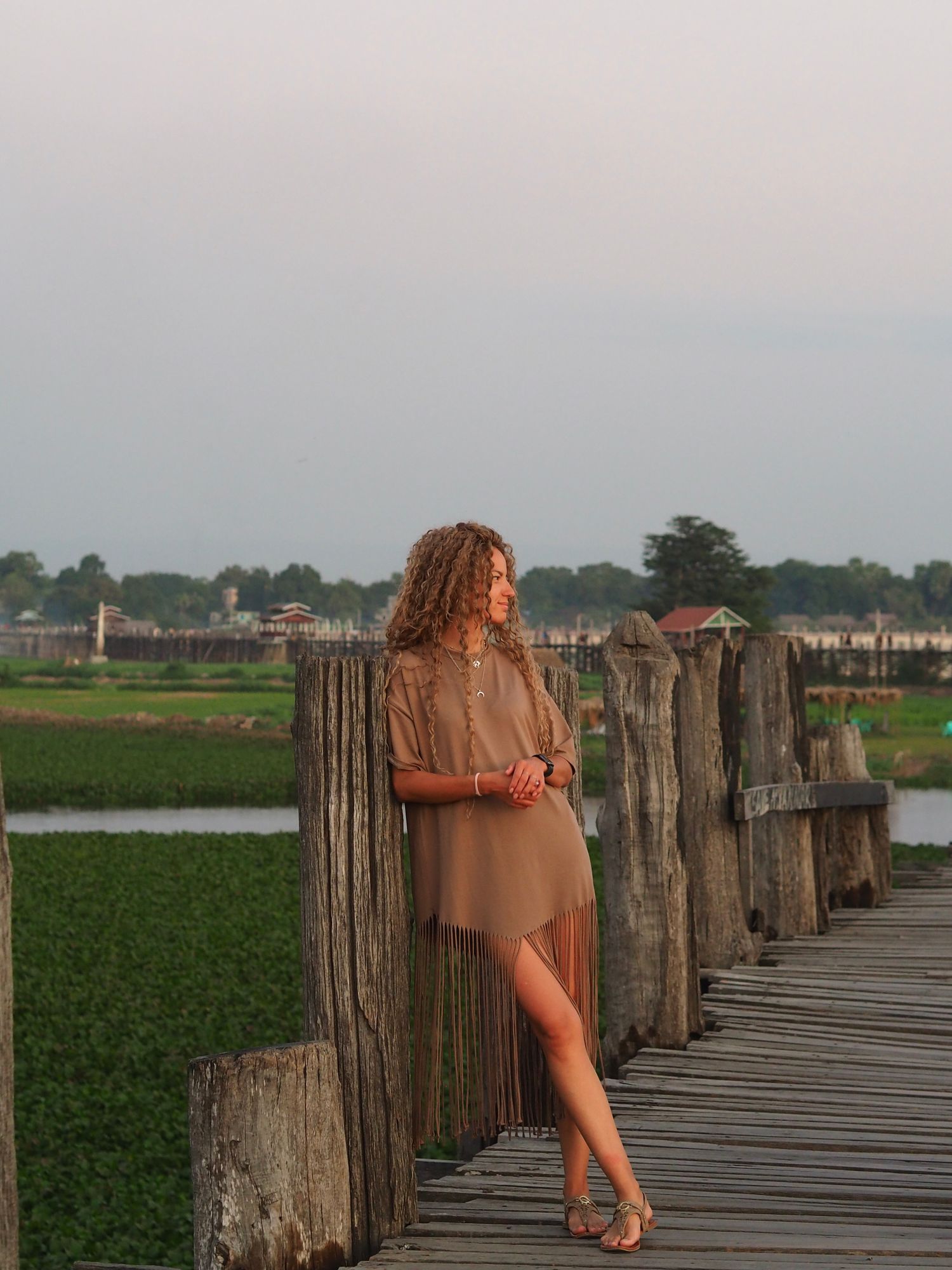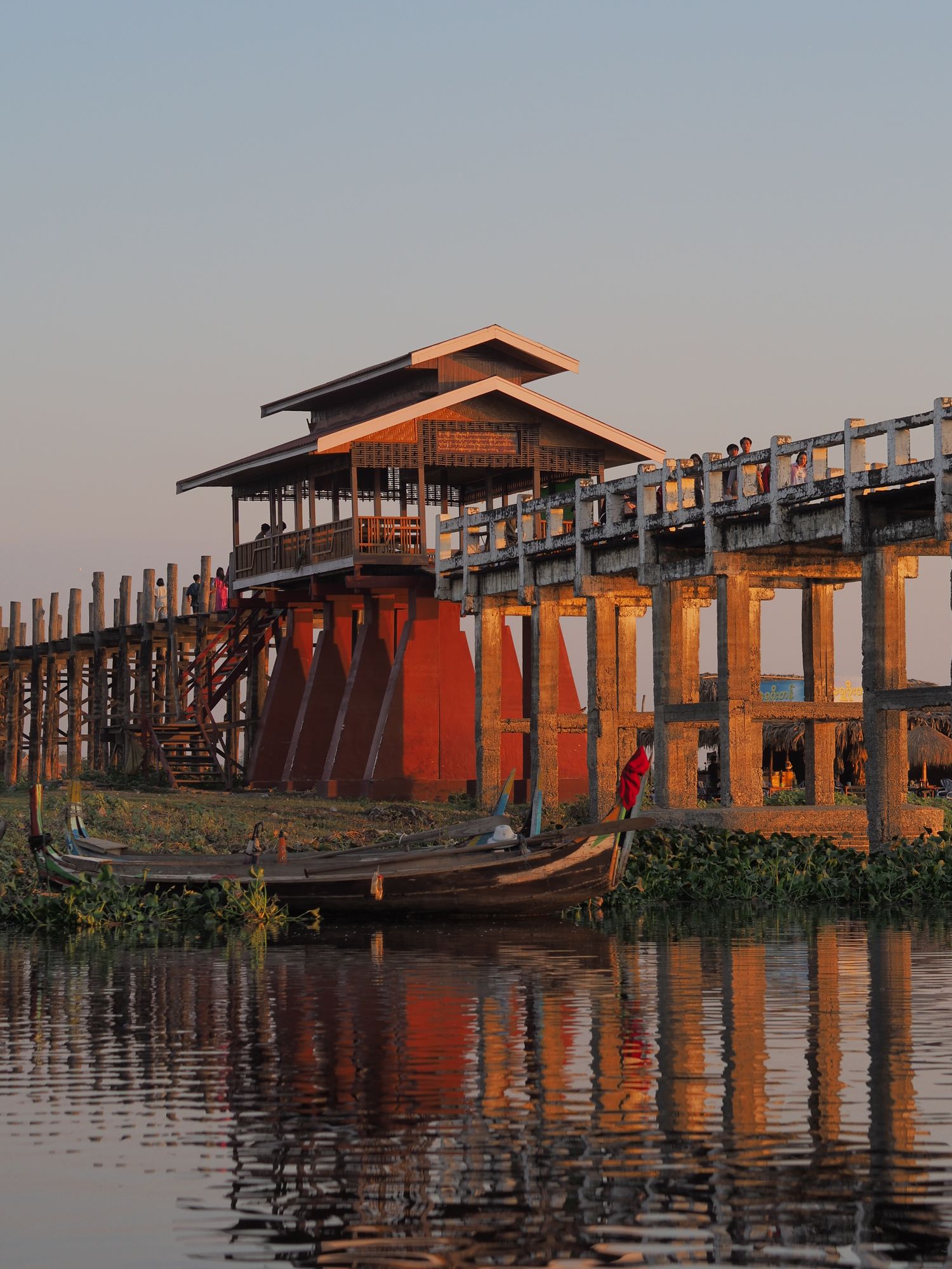 Заселяемся в отель, отдыхаем, а после отправляемся погружаться в атмосферу страны. Наше первое сильное впечатление - закат на мосту У Бейн, самом длинном тиковом мосту в мире. Тёплый свет, силуэты монахов, отражения в воде - момент, который хочется просто прожить.