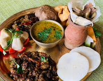 - Попробуете местные блюда, приготовленные со специями и гостеприимством. Пельмешки момо, рис с чечевичным супом, свежевыпеченные лепёшки, ароматный карри...
