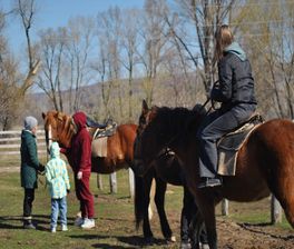 10:00 - Встреча с представителем турбазы Табын. Контактная экскурсия по конному двору. Вы сможете погладить жеребенка, посмотреть на вожака табуна, устроить фотосессию. Наши инструкторы расскажут об особенностях пород и характерах лошадей, покажут, как ухаживать за ними. Мастер-класс по плетению косичек на гриве лошади. Инструктаж по технике безопасности: Ознакомление с упряжью. Навыки езды на учебном кругу (10 минут под уздцы)