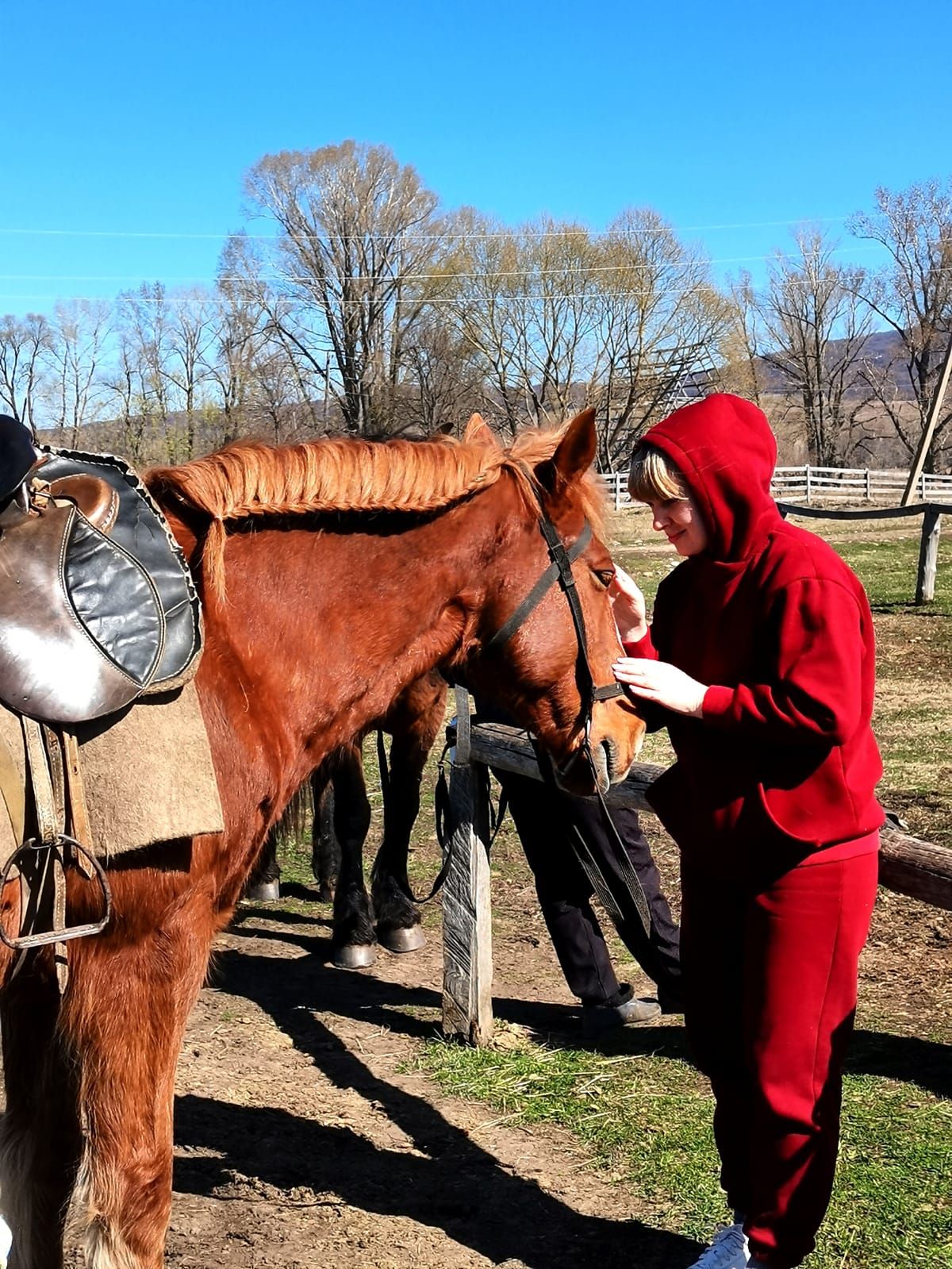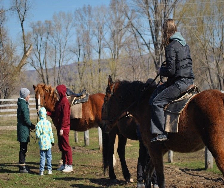 10:00 - Встреча с представителем турбазы Табын. Контактная экскурсия по конному двору. Вы сможете погладить жеребенка, посмотреть на вожака табуна, устроить фотосессию. Наши инструкторы расскажут об особенностях пород и характерах лошадей, покажут, как ухаживать за ними. Мастер-класс по плетению косичек на гриве лошади. Инструктаж по технике безопасности: Ознакомление с упряжью. Навыки езды на учебном кругу (10 минут под уздцы)