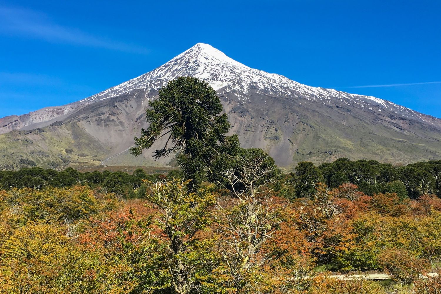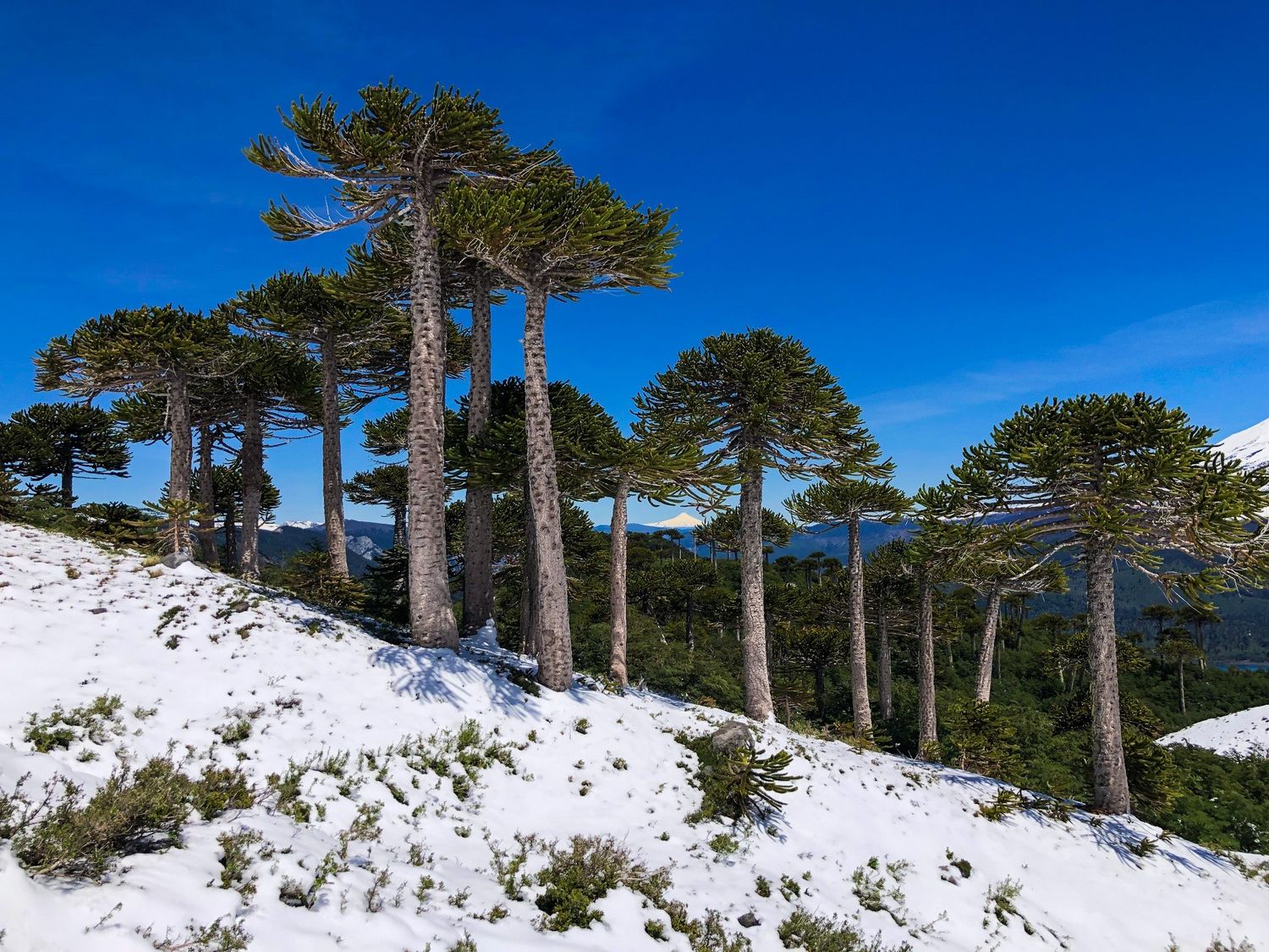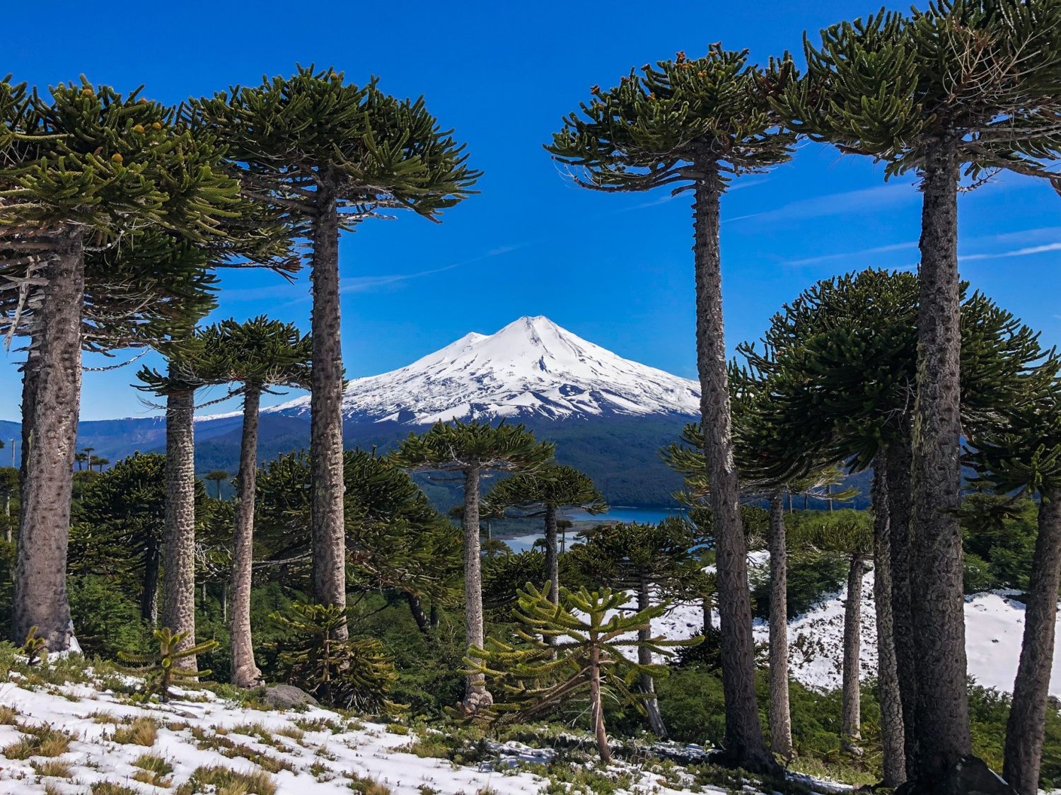 - Араукания - место с самыми необычными деревьями на фоне белоснежных вулканов