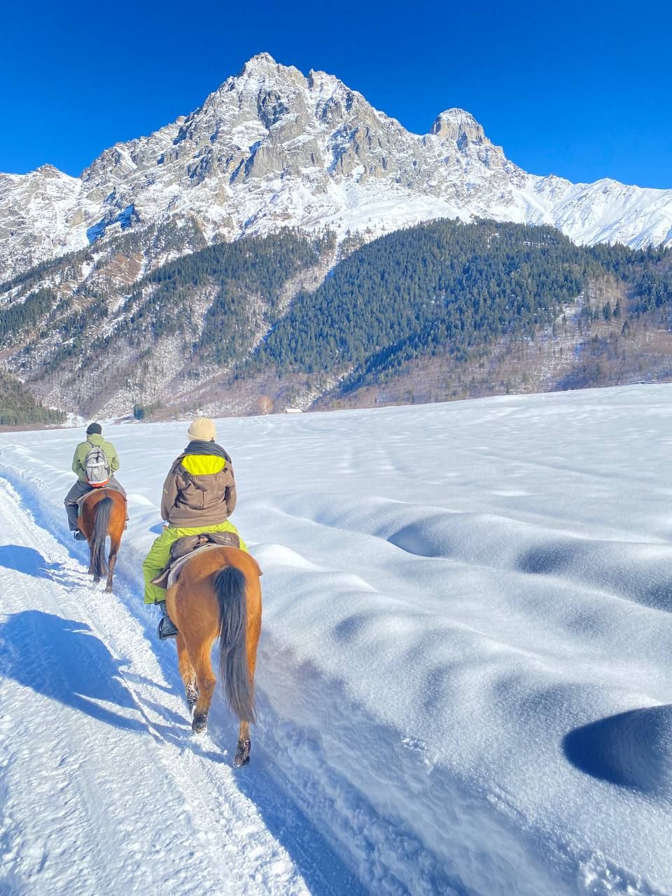 Вы ощутите мощь древних ледников, прикоснётесь к камню сванских башен X-Xii веков и станете свидетелем таинственного праздника Лампроба с факелами и кострами. Будем мчаться на лошадях сквозь искрящийся лес к водопадам, поднимемся над облаками на канатной дороге и узнаем секрет самого согревающего пирога — кубдари, который приготовим сами.