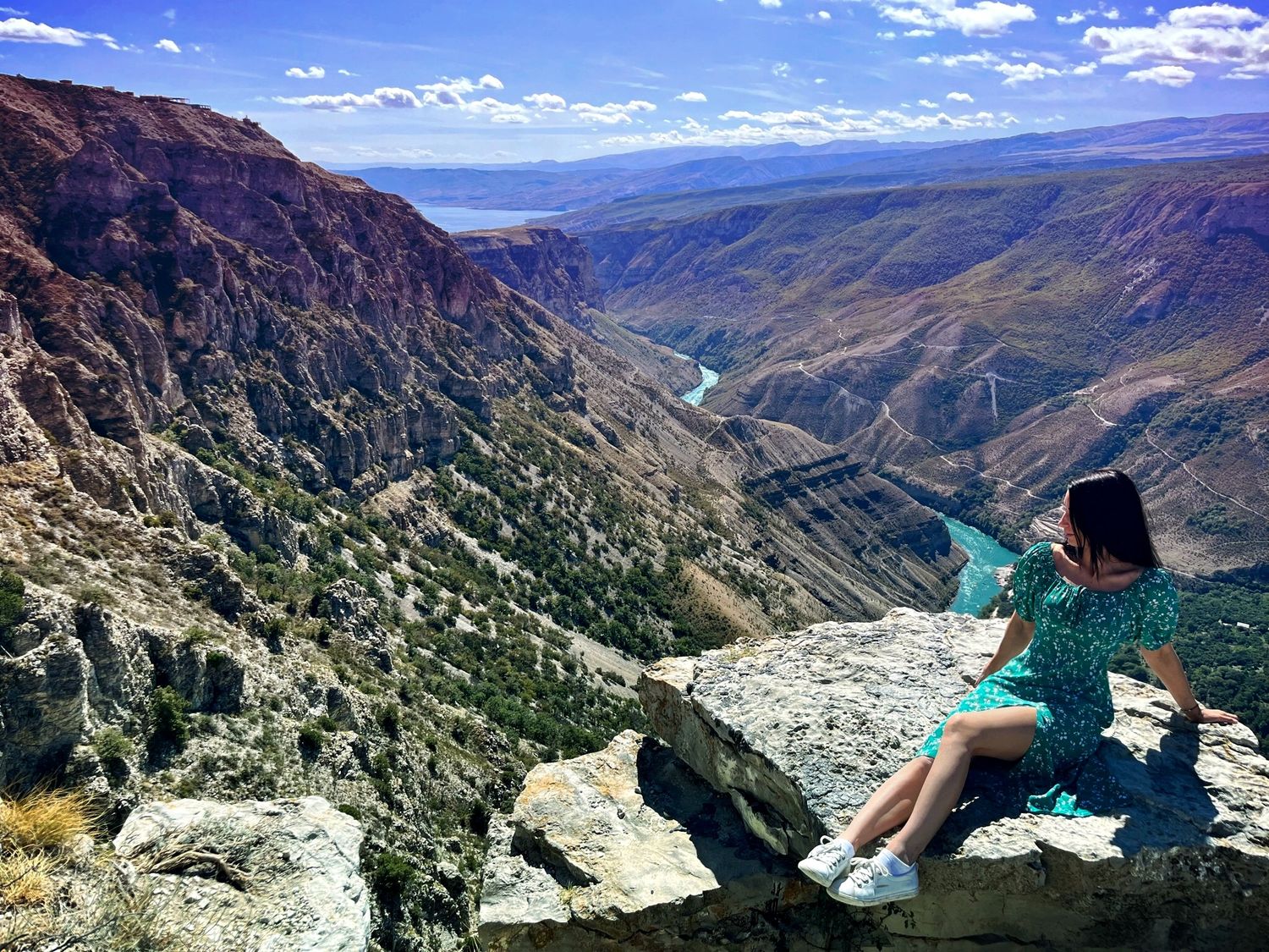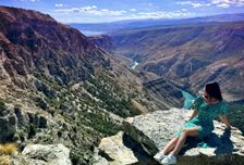 -Смотровая площадка Тещин язык - с этого ракурса открывается глубокий панорамный вид на изгибы реки Сулак, ущелье и окружающие горы.