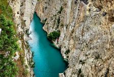 -Карадахская теснина - узкий естественный коридор между скалами, образованный горной рекой за тысячи лет. Ширина в некоторых местах не превышает 2-4 метров при высоте стен до 150 метров.