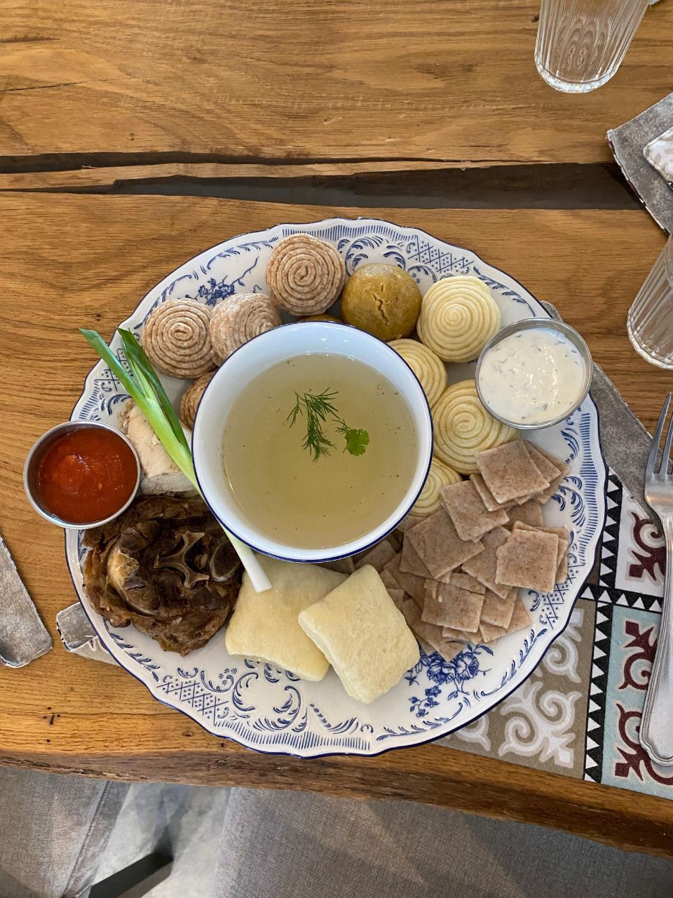 по желанию — ароматный шашлык из курицы или традиционный аварский хинкал.