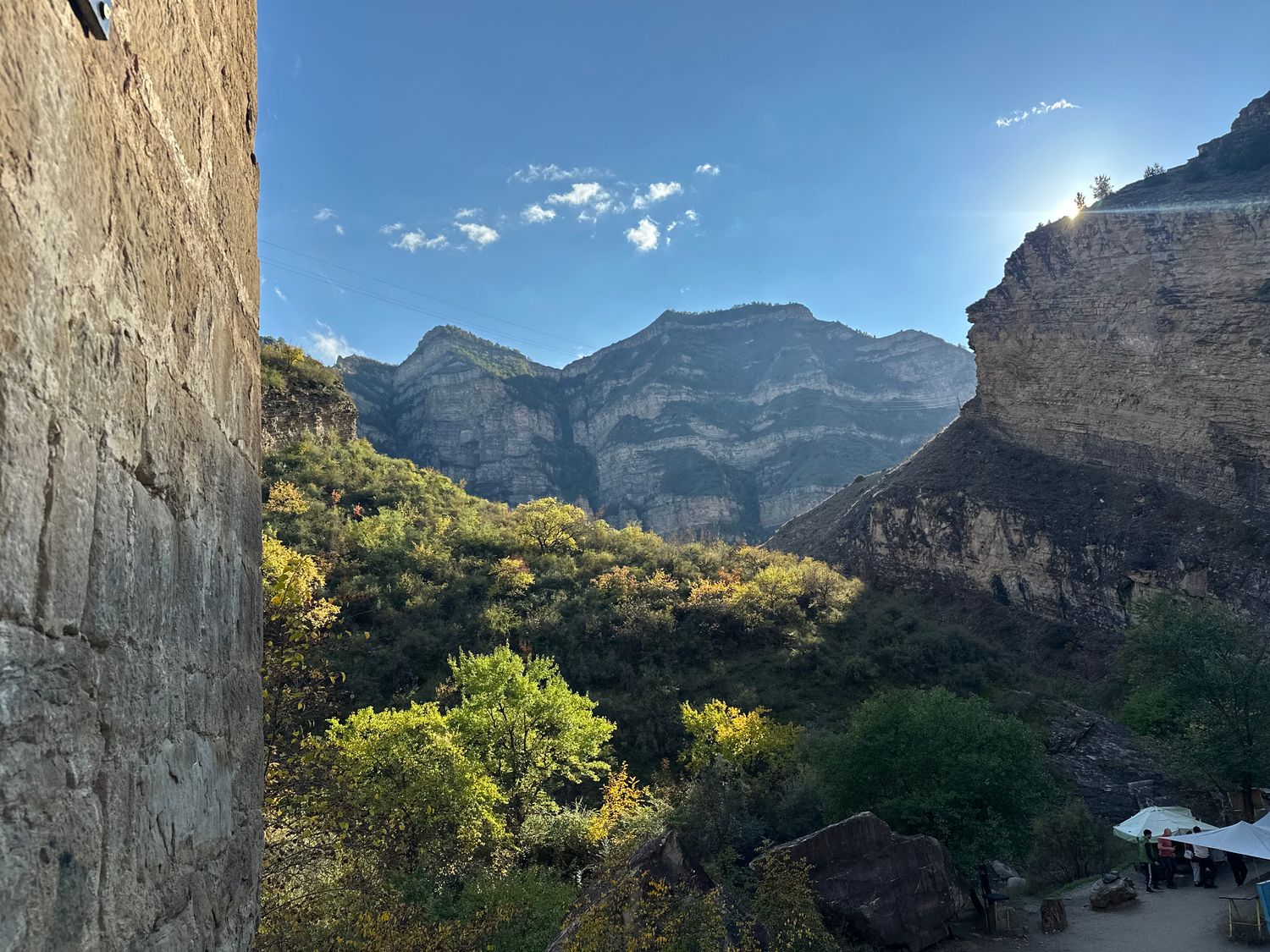 видно, как река вьётся между скалами, будто серебряная лента;