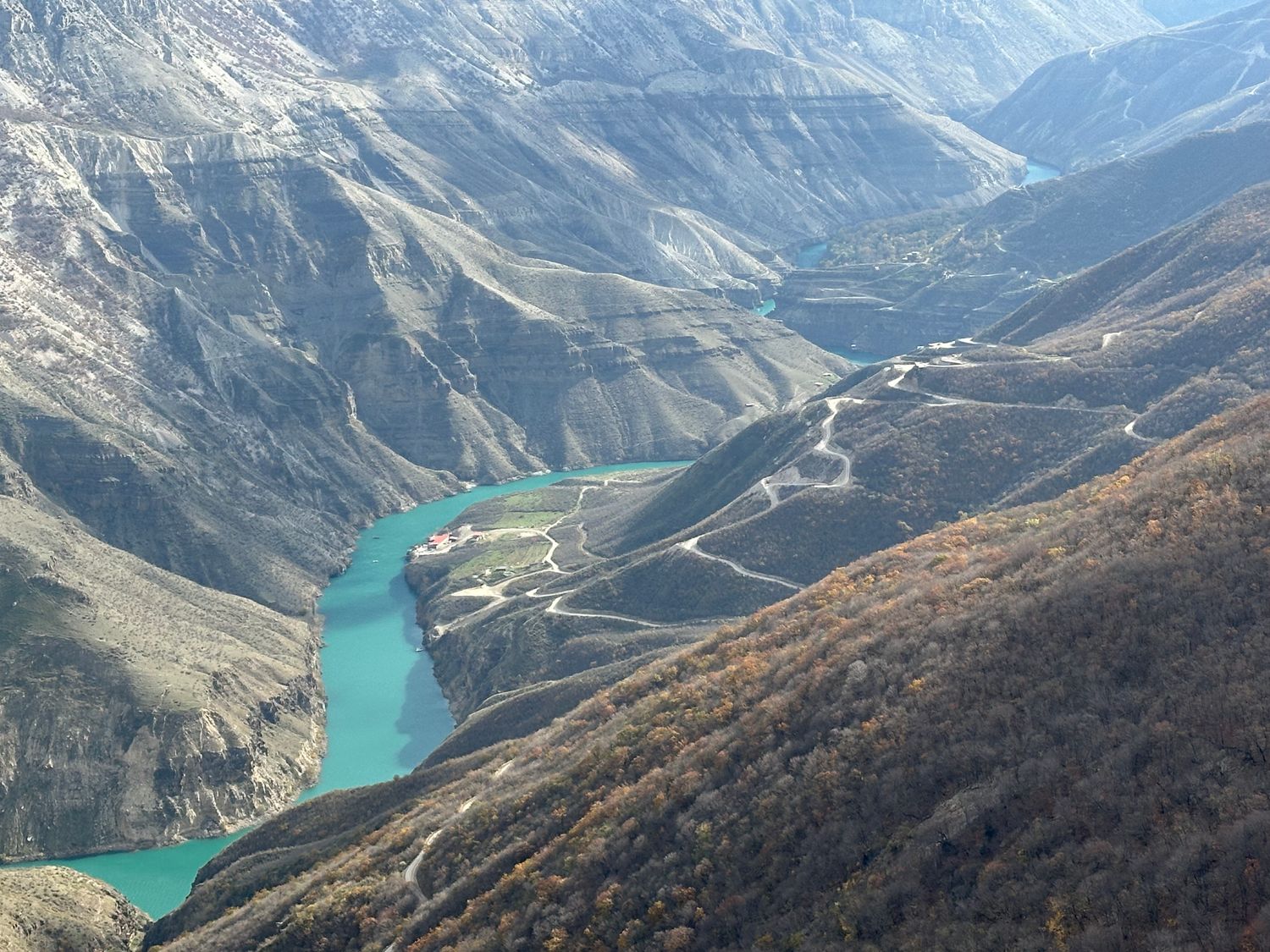 Чиркейского водохранилища с его зеркальной гладью;