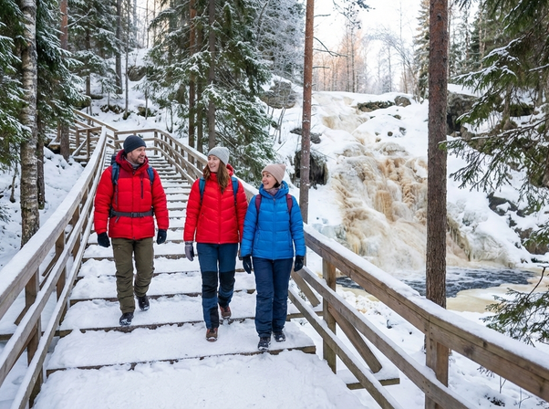 - Прогулка по Долине водопадов — среди заснеженных деревьев, под шум ледяной воды и хруст снега