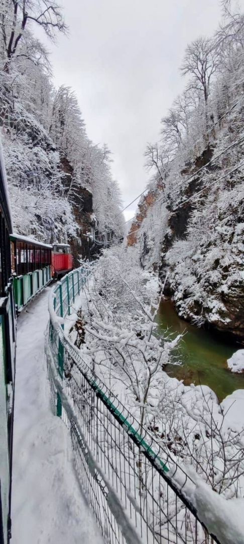 - Гуамское ущелье - Поездка на экскурсионном тепловозе вдоль реки Курджипс через скалы и реликтовый лес с остановкой для прогулки.