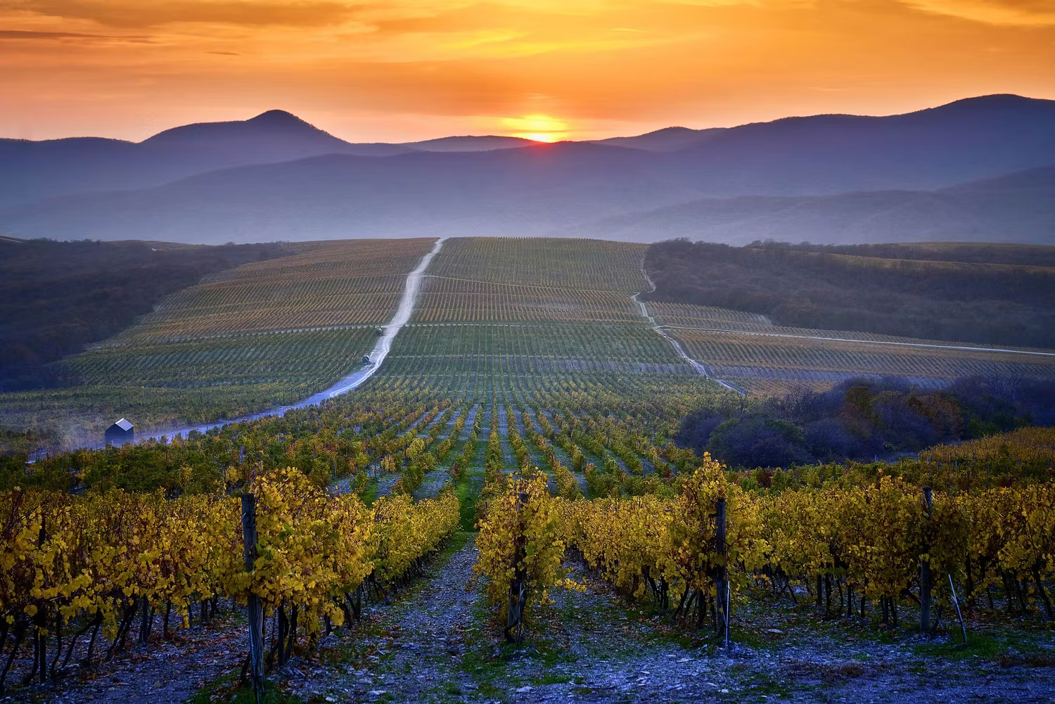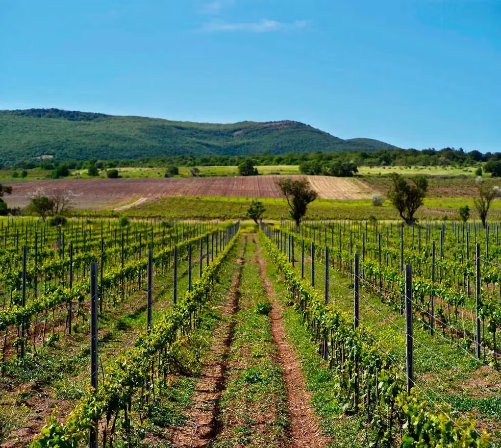 Приближаясь к Долине Лефкадия холмы покрываются рядами виноградных лоз. Они тянутся симметричными линиями, создавая геометрический узор. Здесь начинается территория терруара — места, где почва, климат и рельеф сливаются в идеальный союз для выращивания винограда.
