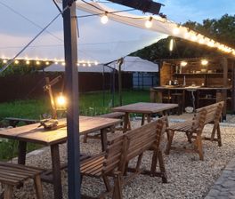 Зона барбекю и летняя кухня со столовой для вкусных и полезных трапез.