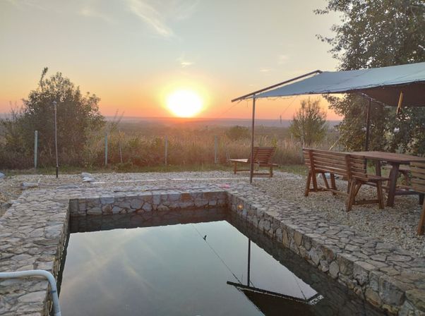 Бассейн из природного камня с артезианской водой идеальное место для расслабления. (Открыт с 1 мая)
