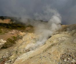 2-й день. Поездка в парк 3 вулкана к подножию Мутновского вулкана, через Вилючинский перевал, откуда открываются невероятные виды на горы и вулканы, далее мы отправимся к геотермальной станции и от туда пешком пройдем 1,5 км в одну сторону, посетим фумарольные площадки, сделаем большое количество насыщенных и неземных фото, а позже искупаемся в диких термальных источниках.