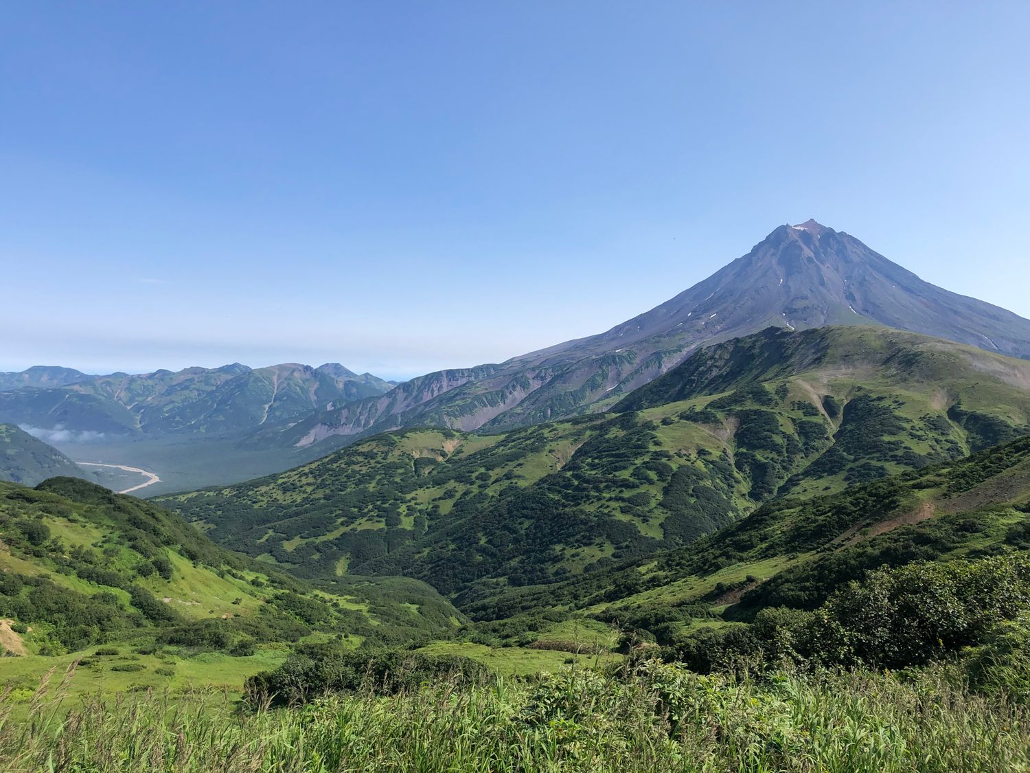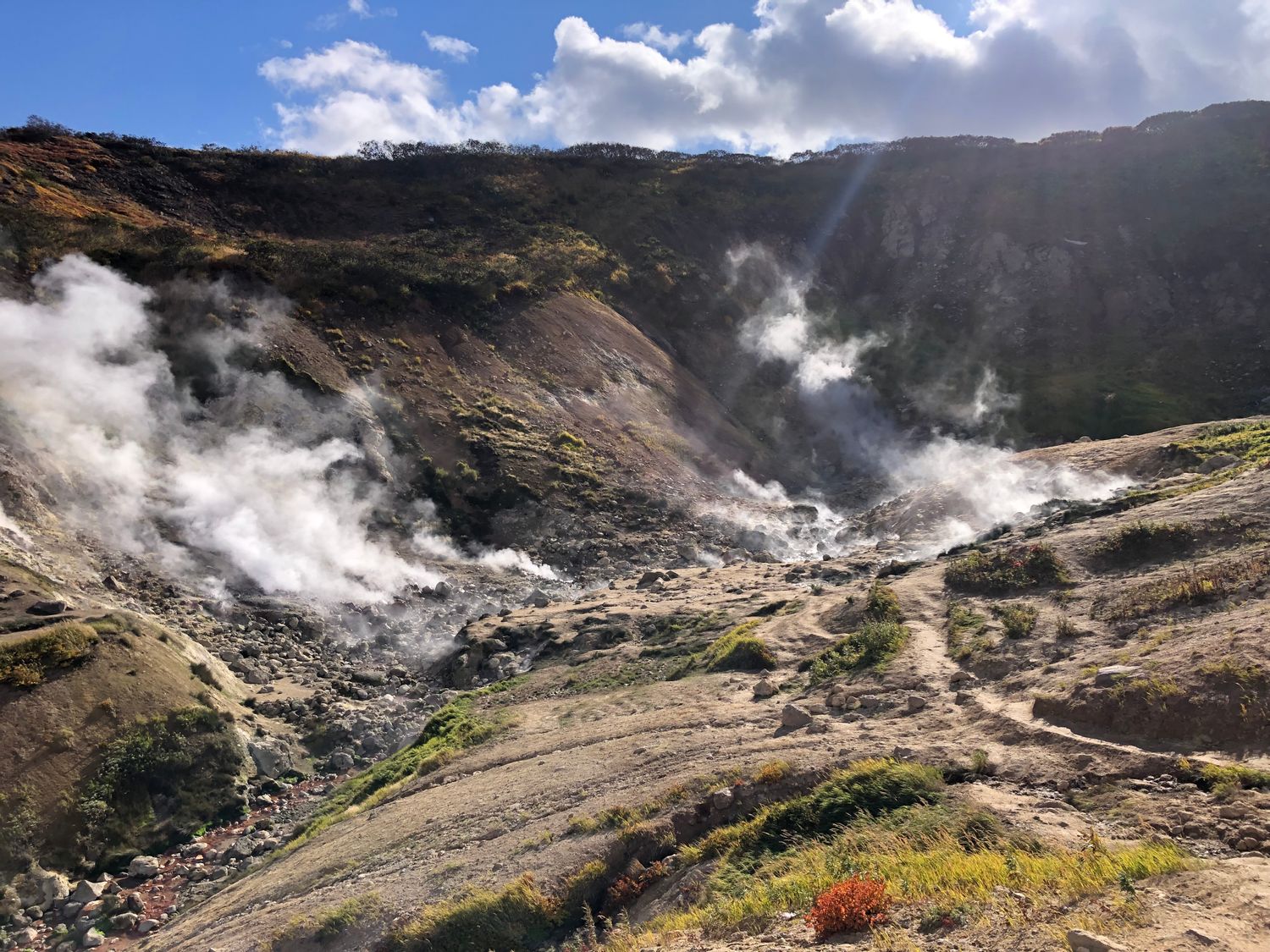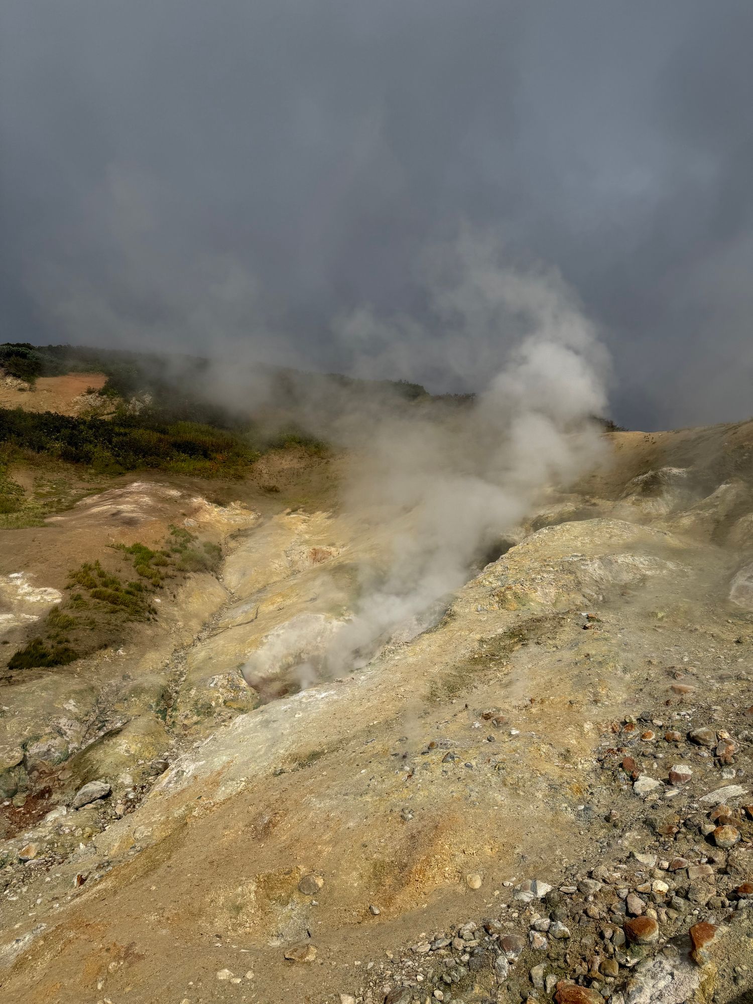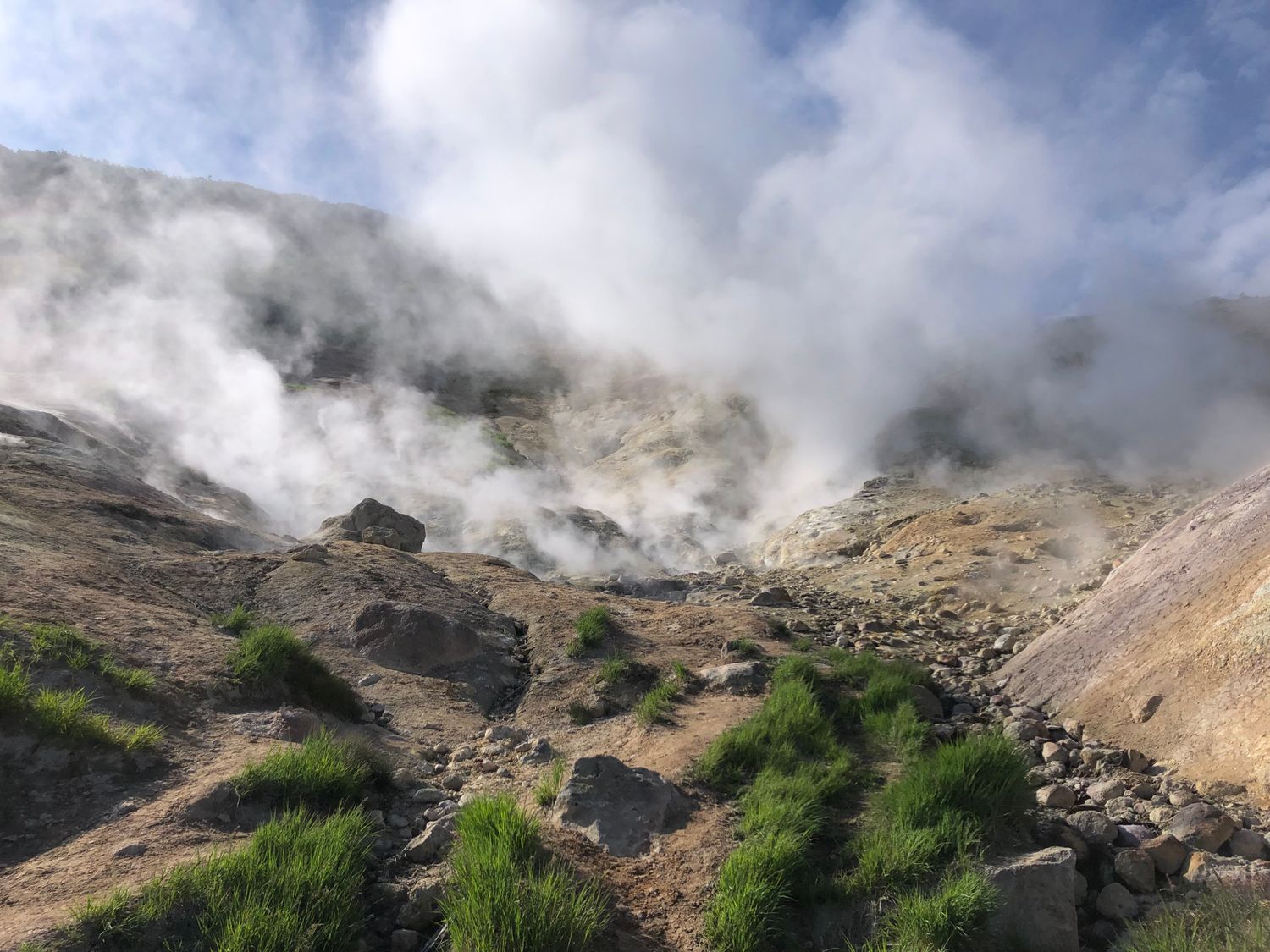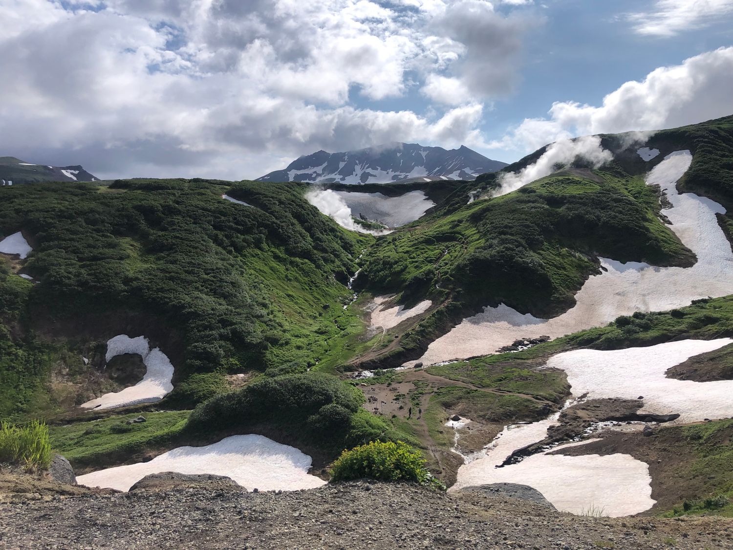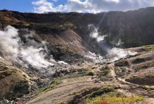 2-й день. Поездка в парк 3 вулкана к подножию Мутновского вулкана, через Вилючинский перевал, откуда открываются невероятные виды на горы и вулканы, далее мы отправимся к геотермальной станции и от туда пешком пройдем 1,5 км в одну сторону, посетим фумарольные площадки, сделаем большое количество насыщенных и неземных фото, а позже искупаемся в диких термальных источниках.