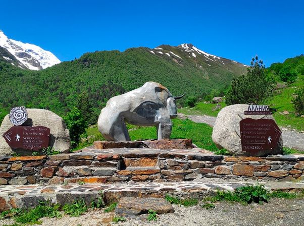 Памятник Уастырджи Дигорское ущелье. Покидая шумный город, отправляемся в живописные ущелья Северной Осетии. В Алагирском ущелье сделаем остановку возле памятника Святому Георгию. Здесь его называют Уастырджи это главный герой местного эпоса, святой покровитель мужчин, воинов и путешественников. Едем дальше, впереди у нас главные ворота горной Дигории каньон Ахсинта. Через каньон проложен мост Ахсинти хед, по-нашему Чёртов мост. Под мостом, на глубине 80 метров, бежит среди скал река Урух. Отсюда до Дигории уже рукой подать! После приезда, разбиваем палаточный лагерь. В течение всего времени отдыха наш лагерь будет расположен на одном месте. Кемпинг находится на высоте 1740 м. Активная часть похода: 2 км пешком.
