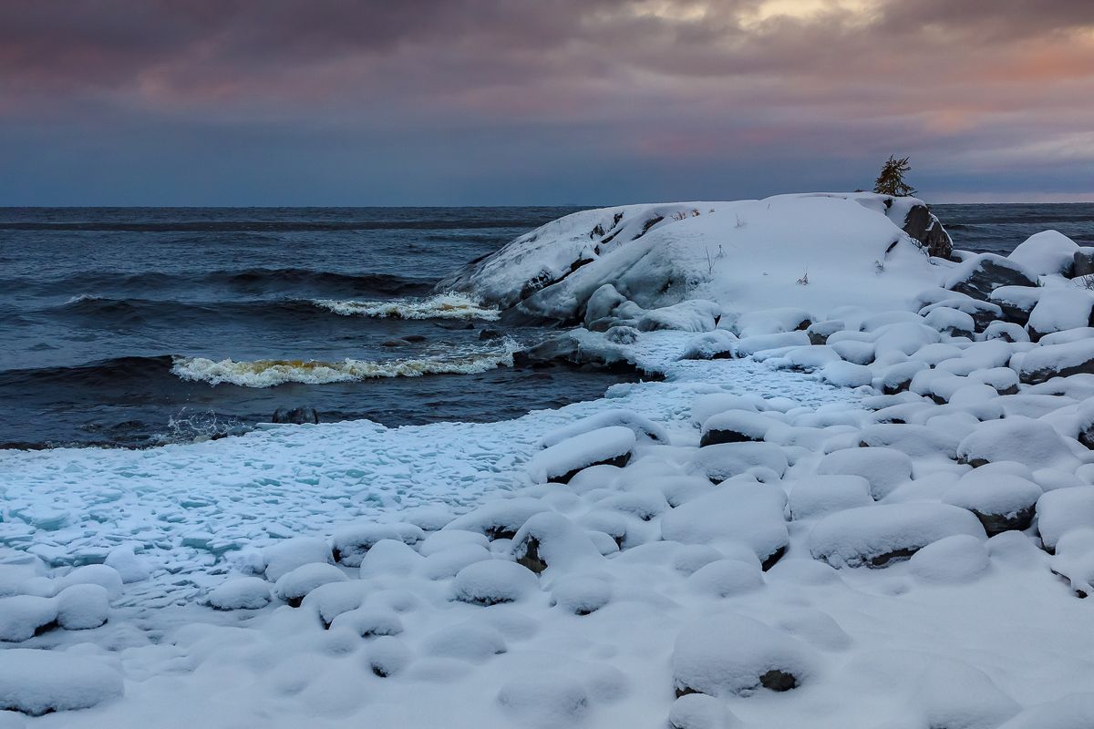 Наше путешествие проходит в окрестностях Ладожского озера и его бесчисленных ладожских шхер. Фото Ладоги зимой это уникальное застывшее во времени напоминание о борьбе воды и мороза, льда и волн.