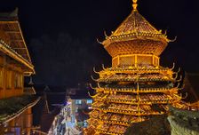 Прогулка по городу: Пекинская улица с торговыми лавочками, храм Хранителей города с золотыми фресками, храм Большого Будды в вечерней подсветке.