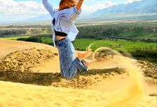 Ваше путешествие начнется с фантасмагорического контраста. Посреди предгорий вас встретит Бархан Сары-Кум — золотистый исполин, словно сошедший со страниц восточных сказок. Песок, теплый и шелковистый под ногами, и панорама степей создадут ощущение иного мира.