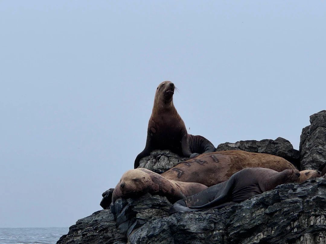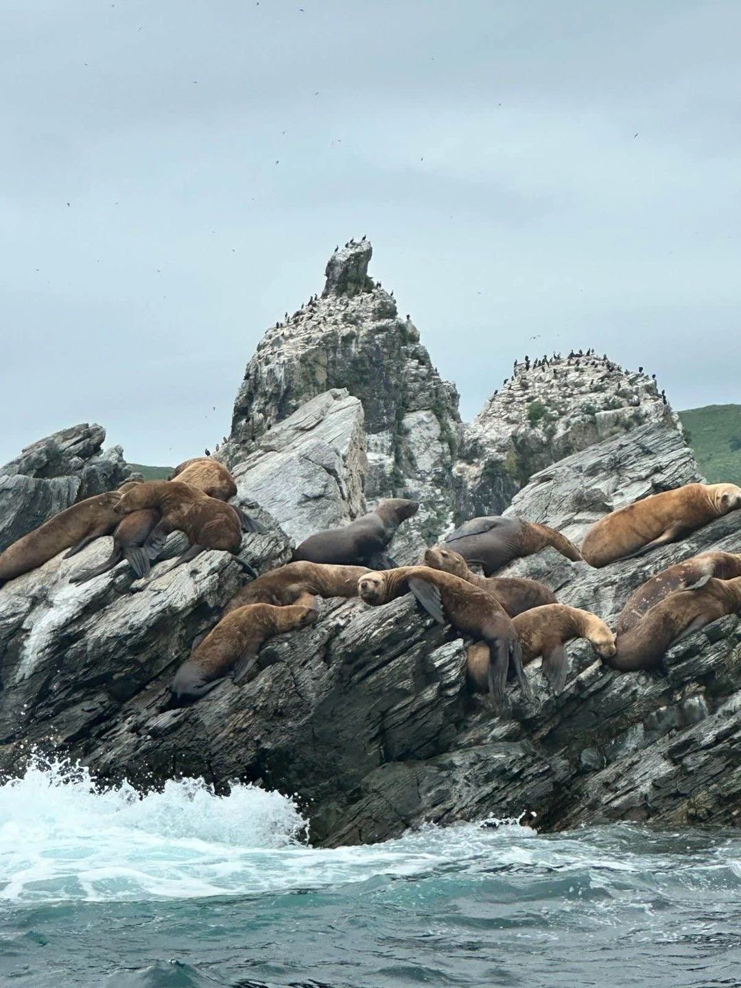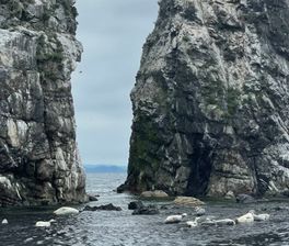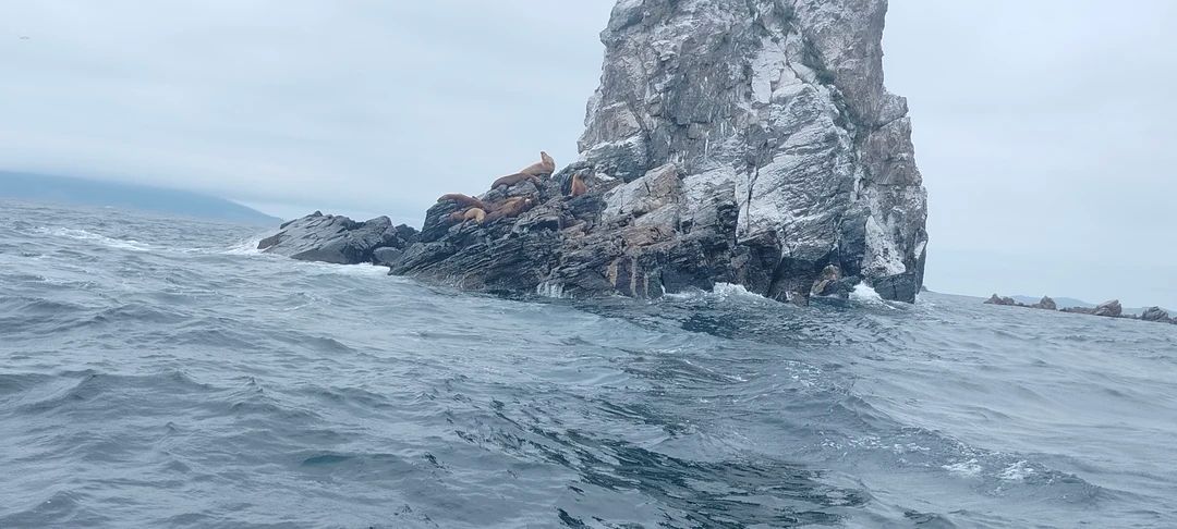 13:30 — переход к кекурам Пять Пальцев. Вы сможете наблюдать сивучей и тюленей ларга, отдыхающих на камнях, ныряющих или добывающих пищу.