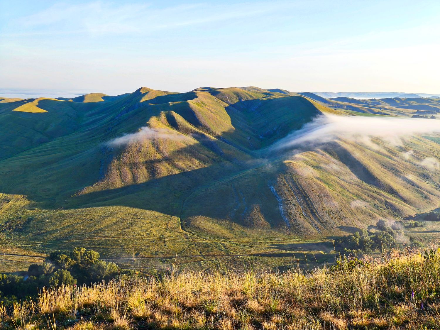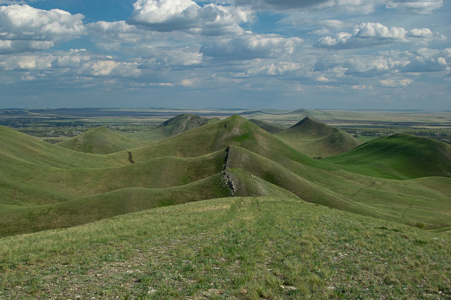 Путешествие идеально подойдет тем, кто хочет насладиться степными просторами. Главное сокровище этих мест - отсутствие лесов. С любой вершины открывается панорамный вид на бескрайнюю степь и холмистую гряду уходящую за горизонт.