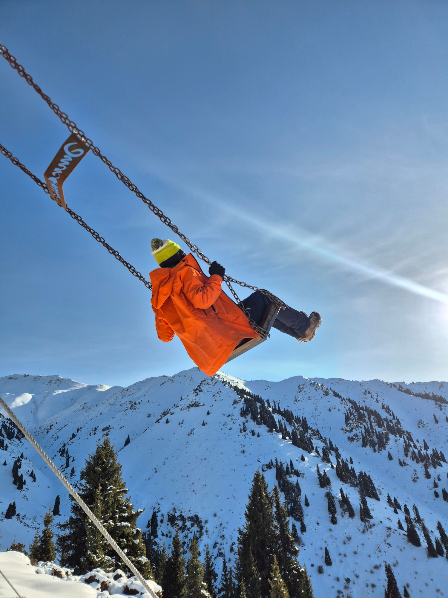 По пути — те самые горные качели, где хочется остановиться и сделать фото на память.