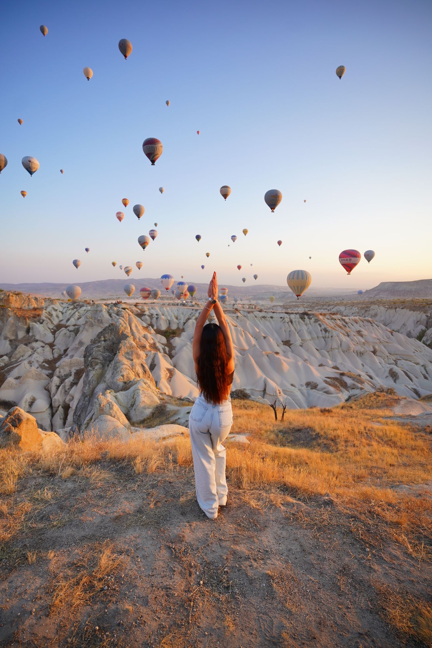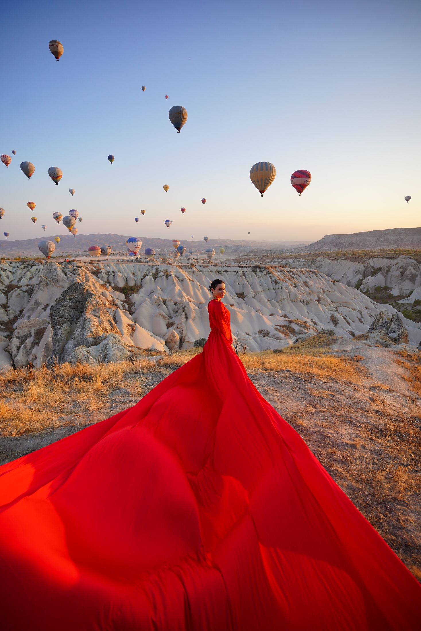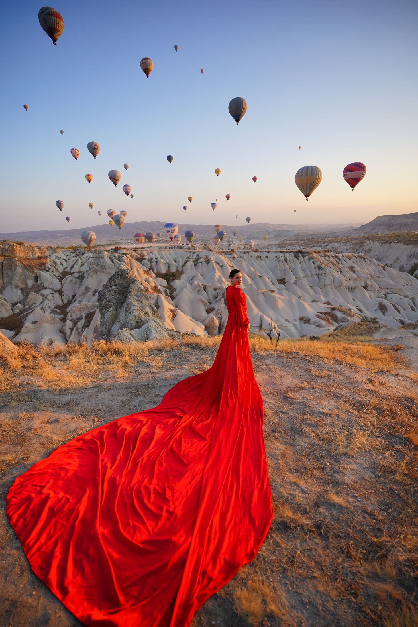 Встретить утро с видом на сотни шаров парящих в небе и насладиться бескрайними пейзажами Каппадокии!