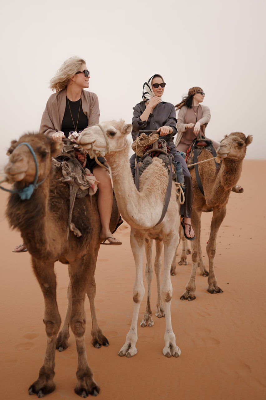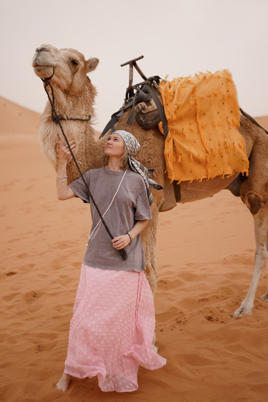 - Буквально 3 часа назад вы наслаждались Марракешем с его риадами и дизайнерскими ресторанами.А сейчас — верблюд на закате, приватный шатер с душем, ужин от шефа, стук барабанов у огня и бескрайнее небо с миллионом звезд. Да, это Сахара!