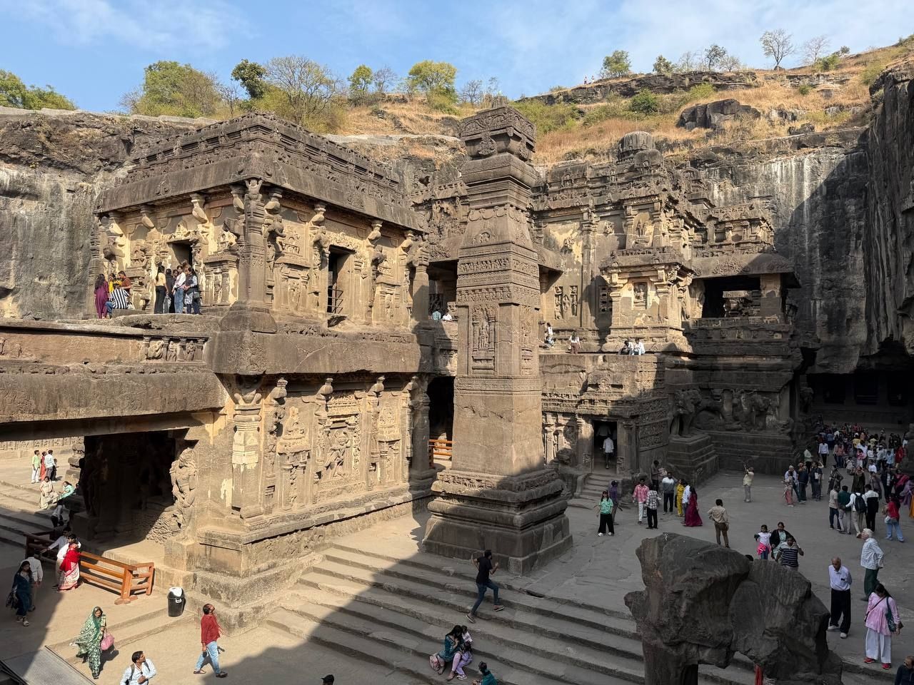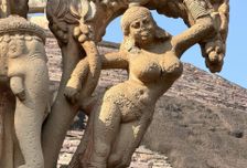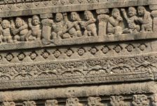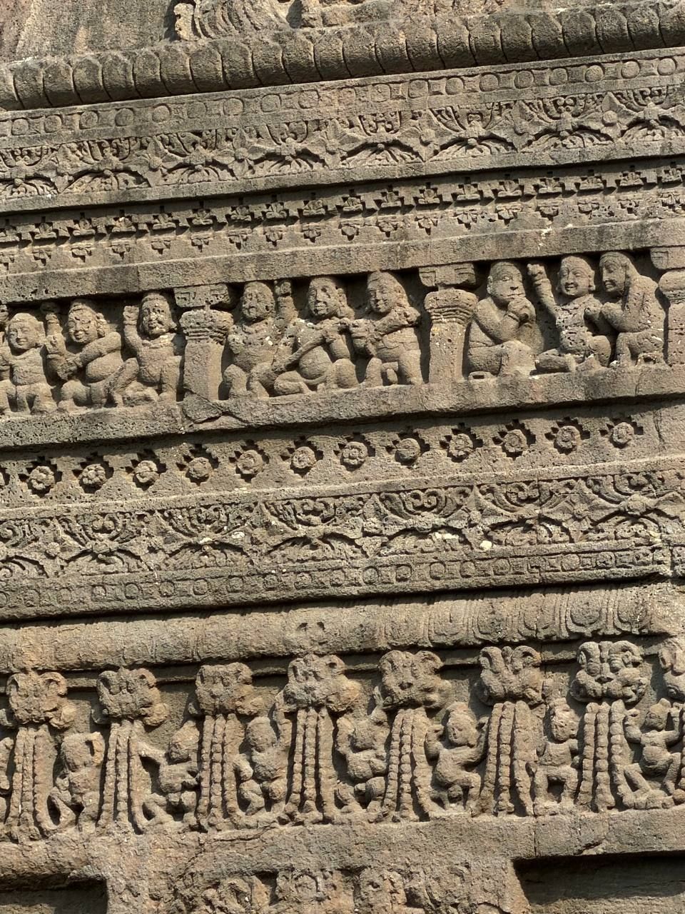 Затем едем смотреть джайнисткую группу храмов. Она немного меньше, но хороша по-своему. Не обделим вниманием девушку, красящую кисточкой глаз (видимо, готовится на свидание) это знаменитое изображение украшает, пожалуй, все статьи по истории индустрии макияжа. Среди других интересных рельефов флейтисты, влюблённые и девушка, достающую занозу.