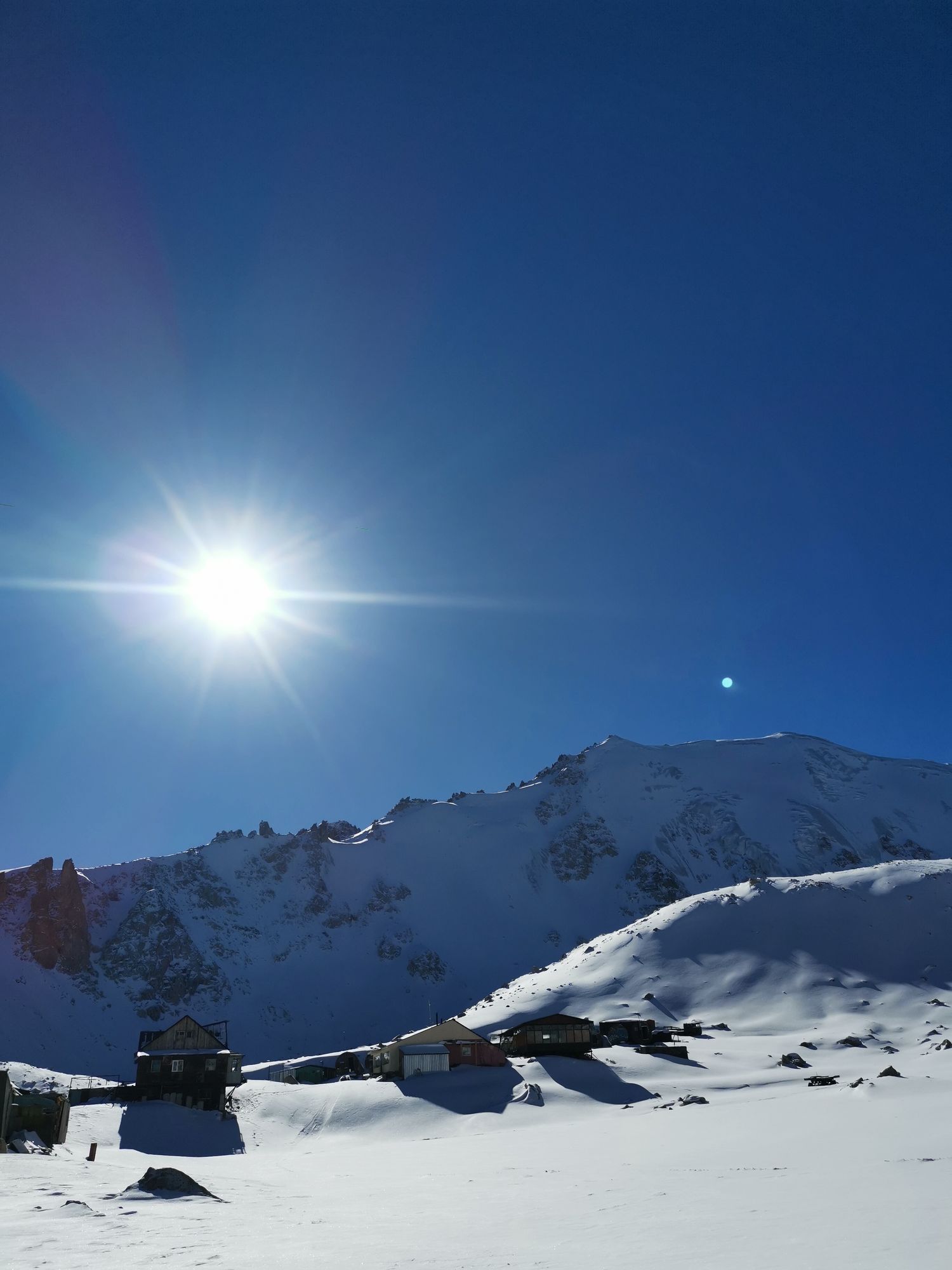 - Далее по дороге мы поднимемся до высокогорного плато Мынжилки на высоту 3100м н.у.м. На территории имеется стационарная круглогодичная метеостанция и селезащитная плотина. А так же недавно там построили современную беседку с интернетом.