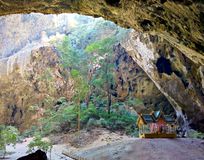 - Солнечный луч падает через отверстие в потолке на королевскую беседку - волшебный грот в скалах у Хуа Хина.