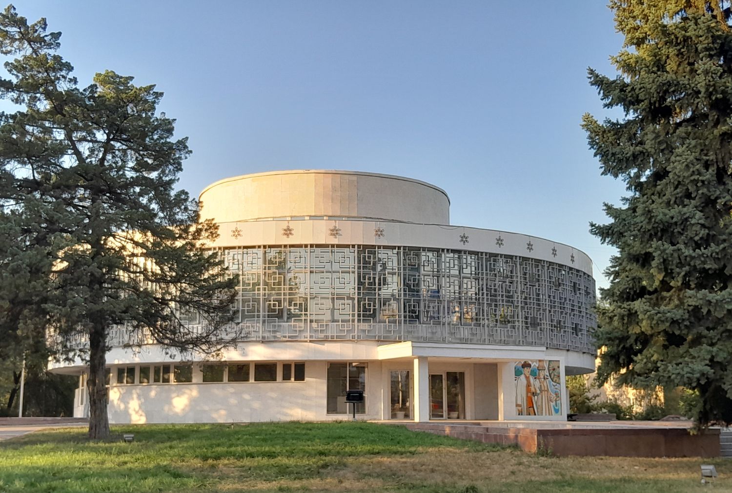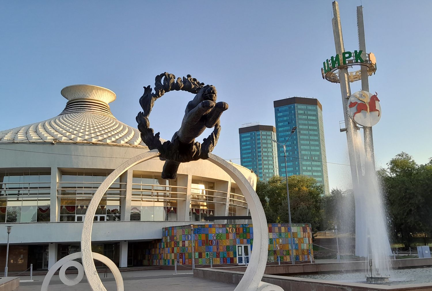 Наш маршрут начинается у здания Алматинский цирк — одного из самых узнаваемых сооружений города, построенного в 1970-х годах. Его купол напоминает традиционную юрту, что символично для казахской культуры.