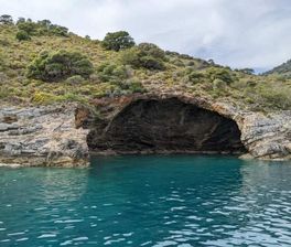 Первая остановка — живописный остров Дишлидже, который с высоты напоминает зубы древнего дракона. Скалы здесь образованы застывшей вулканической лавой, а вода у берега особенно прозрачная. Это идеальное место для первого купания и лёгкого ужина на закате.