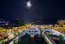 - Чжэньюань — древний город, застывший во времени. В отличие от других объектов, здесь исследуешь не природу, а время. Город, раскинувшийся вдоль изумрудной реки Уян, хранит пласты двух тысячелетий истории, которые читаются в камне мостов, изгибах переулков и тенях на воде.