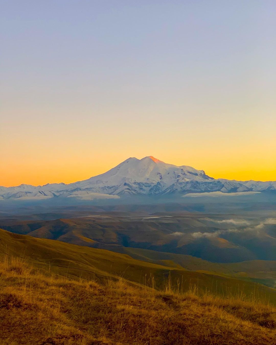 С плато Бермамыт открывается лучший вид на Эльбрус и весь Кавказский хребет. Маршрут проходит через альпийские луга с разнотравьем, где пасутся карачаевские скакуны и барашки.
