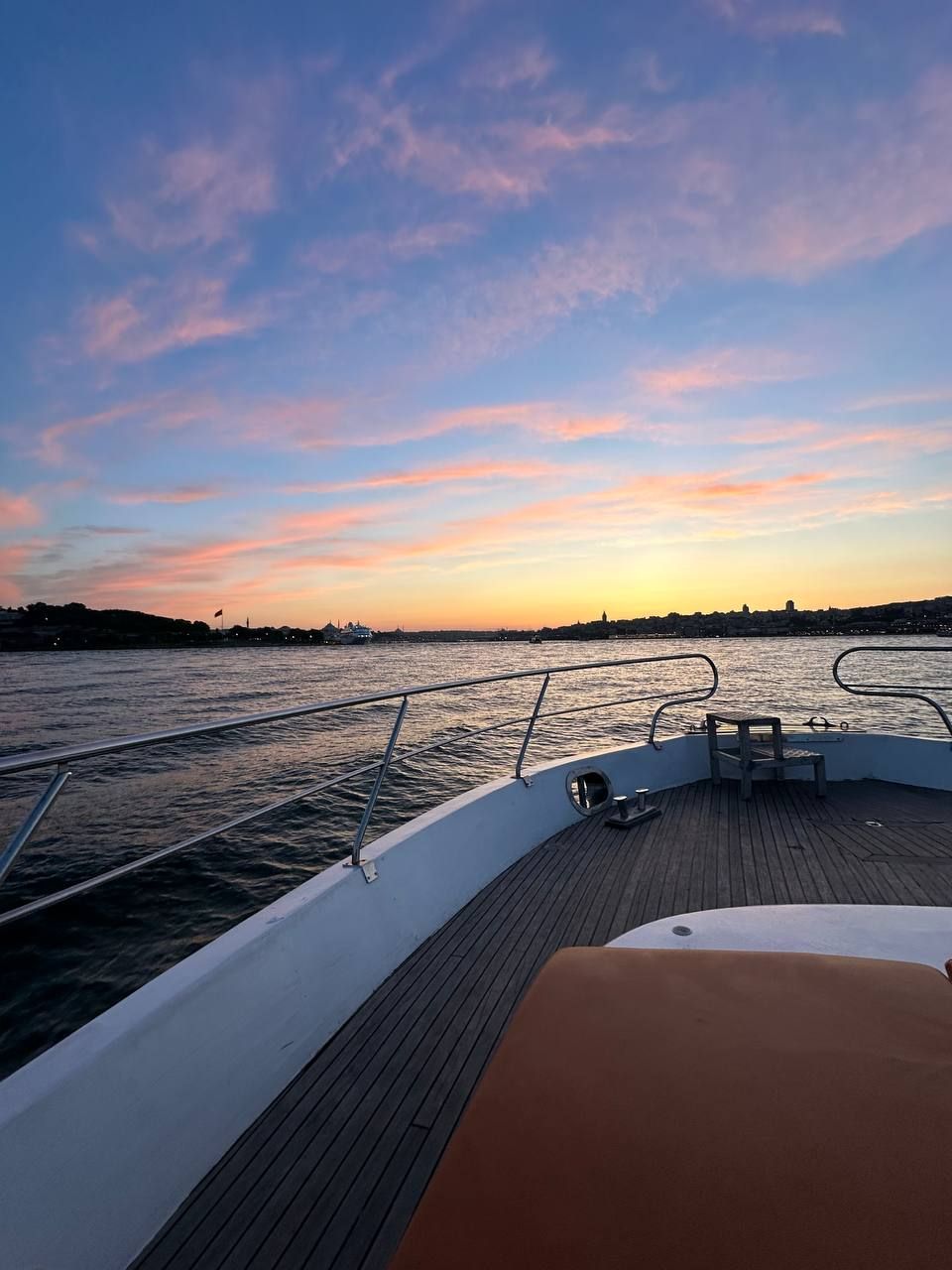 - Закат на Босфоре на приватной яхте. Город включается огнями, вода — как зеркало, на столе закуски и напитки. Первый сильный момент выезда: без толпы, без шума — только свои и правильная атмосфера.