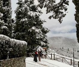 Волшебные виды, особенно на закате, нескончаемое вкусное вино, каждый день дегустация новых блюд. Самое необычное было - сливочное мороженое с трюфелем. А увидеть в Тоскане снег в январе 6 января отношу к чуду. Спасибо Сергею, что может сделать людей счастливыми☺️