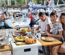 После инструктажа и знакомства с экипажем вы остаетесь в марине или переходите в ближайшую спокойную лагуну. Первый вечер проходит мягко и красиво — вы привыкаете к ритму воды.