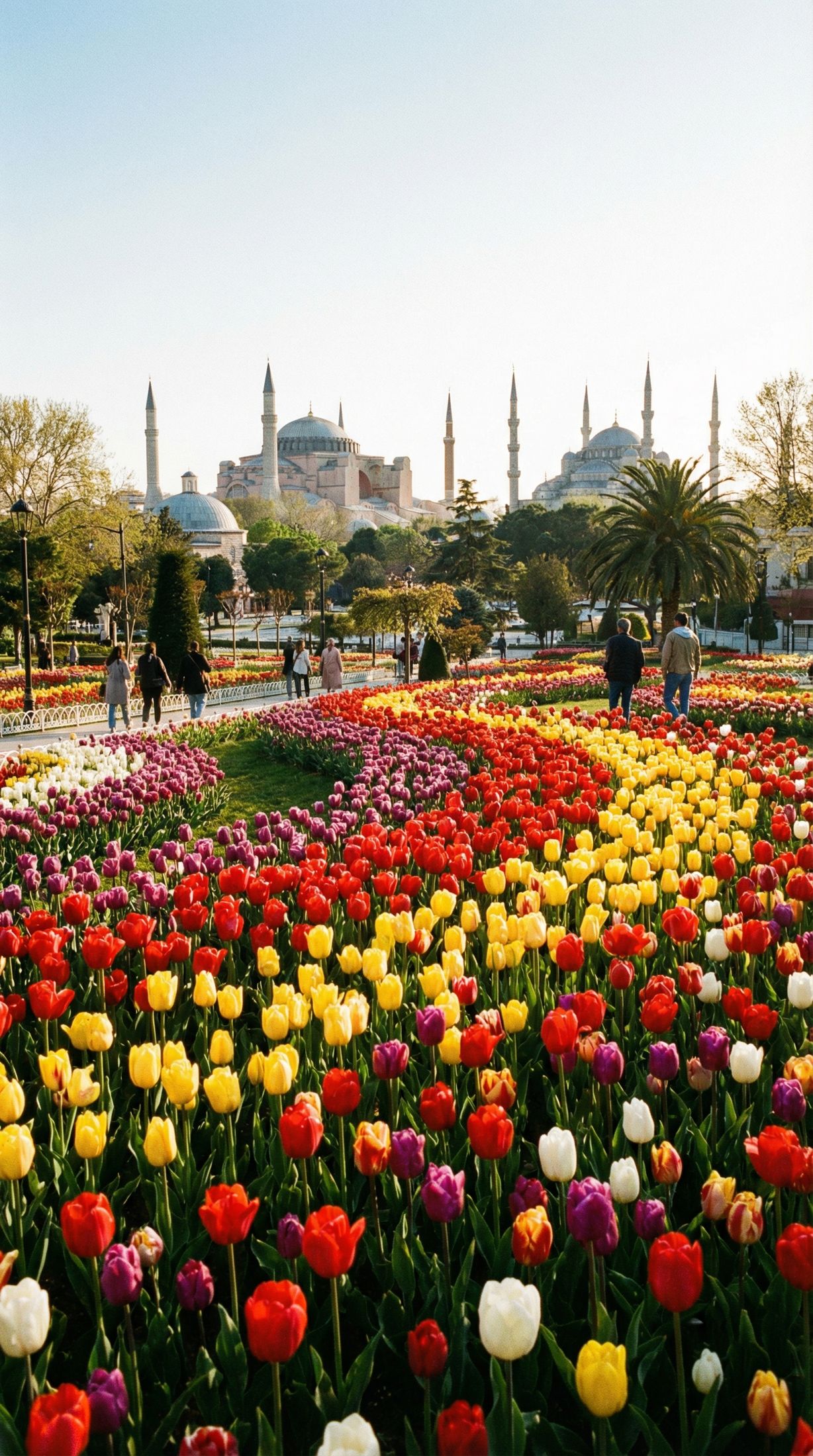 Представь: апрель. Стамбул превращается в живую декорацию. 30 миллионов тюльпанов распускаются одновременно, превращая суровый город в бесконечный цветущий сад.