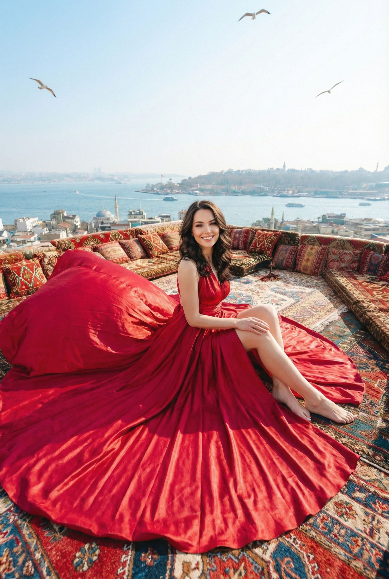 Душа Босфора. Забудь про дорогие и пафосные яхты. Мы почувствуем настоящую жизнь города: сядем на легендарный городской паром (Vapur) на закате, возьмем горячий чай в бардаках, свежий симит и будем кормить чаек с руки. Ветер в волосах, силуэты мечетей и абсолютное счастье — это нужно прожить.