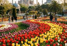 18:00: Парк Гюльхане. Первые ковры из тюльпанов под вековыми платанами.