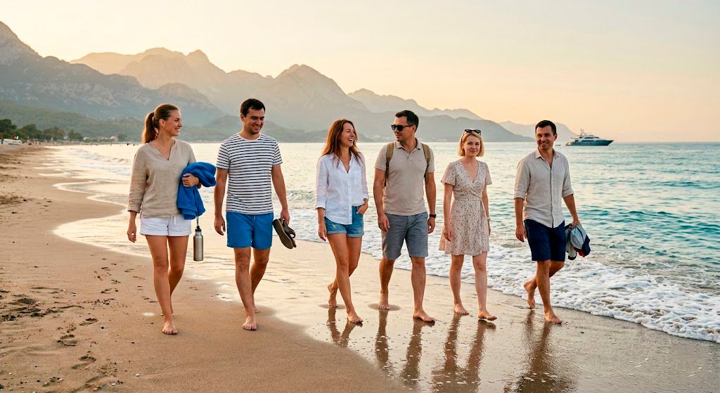Тем, кто любит мягкие активности и красоту без перегруза: купание в бухтах, сап/снорклинг, прогулки по городкам, береговая экскурсия (Саклыкент + Патара), и по желанию — параплан.