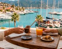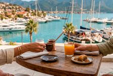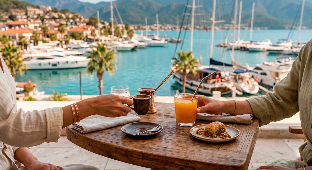 В марине вы передаёте чемоданы команде — и сразу переключаетесь в отдых. Идём на обед в уютный местный ресторан: вкусно, неспешно, с ощущением я на месте.