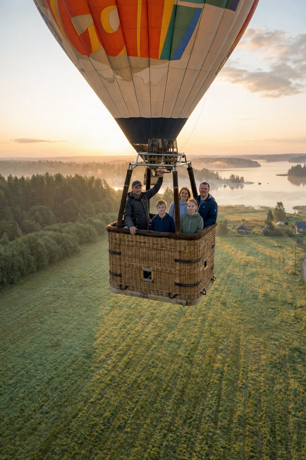 - Полет на воздушном шаре над Карелией — рассвет/закат, бескрайние леса и озёра под вами, шампанское и сертификаты после приземления. Тот самый момент, который семья будет вспоминать годами.