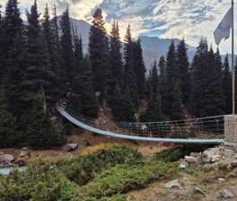 , а выше поляны находится подвесной мост